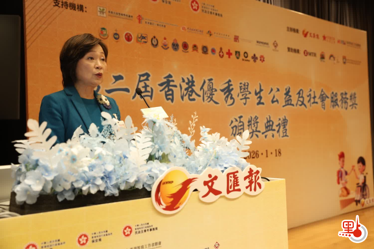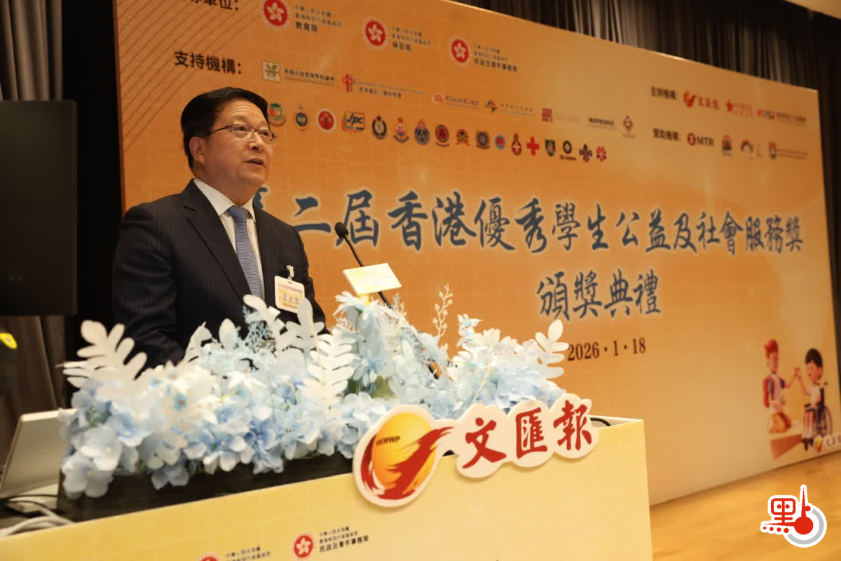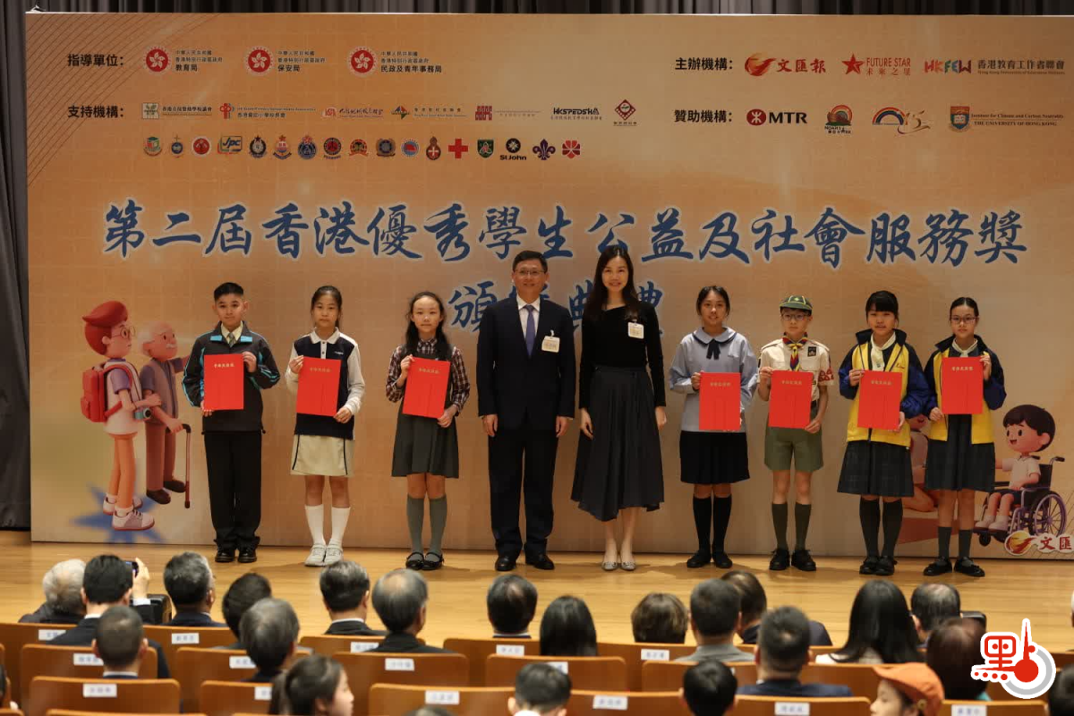 【點新聞報道】參與公益服務是香港青年全人發展、將仁愛融入日常生活、以善意推動社會溫暖的重要一環。為表揚及激勵積極參與公益服務的學生,香港文匯報與香港教育工作者聯會早前合辦第二屆「香港優秀學生公益及社會服務獎」,並於今日(18日)在香港大學舉行頒獎典禮,表彰過百名熱心服務社會、於社區傳揚大愛的學生。典禮邀得特區政府教育局局長蔡若蓮,香港大公文匯傳媒集團董事長兼文匯報社社長、大公報社社長李大宏出席主禮並致辭,約300名師生、家長與各界嘉賓歡聚一堂,共同見證這項意義深遠的教育界盛事。