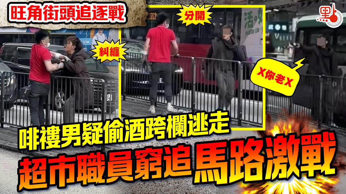 【點新聞報道】旺角街頭上演追逐戰!近日網上瘋傳一段影片,顯示旺角一間超市的職員懷疑有男子偷酒,立即衝出店舖追截,雙方在車來車往的馬路中央隔着鐵欄糾纏。影片曝光後,旋即引起網民熱議。
