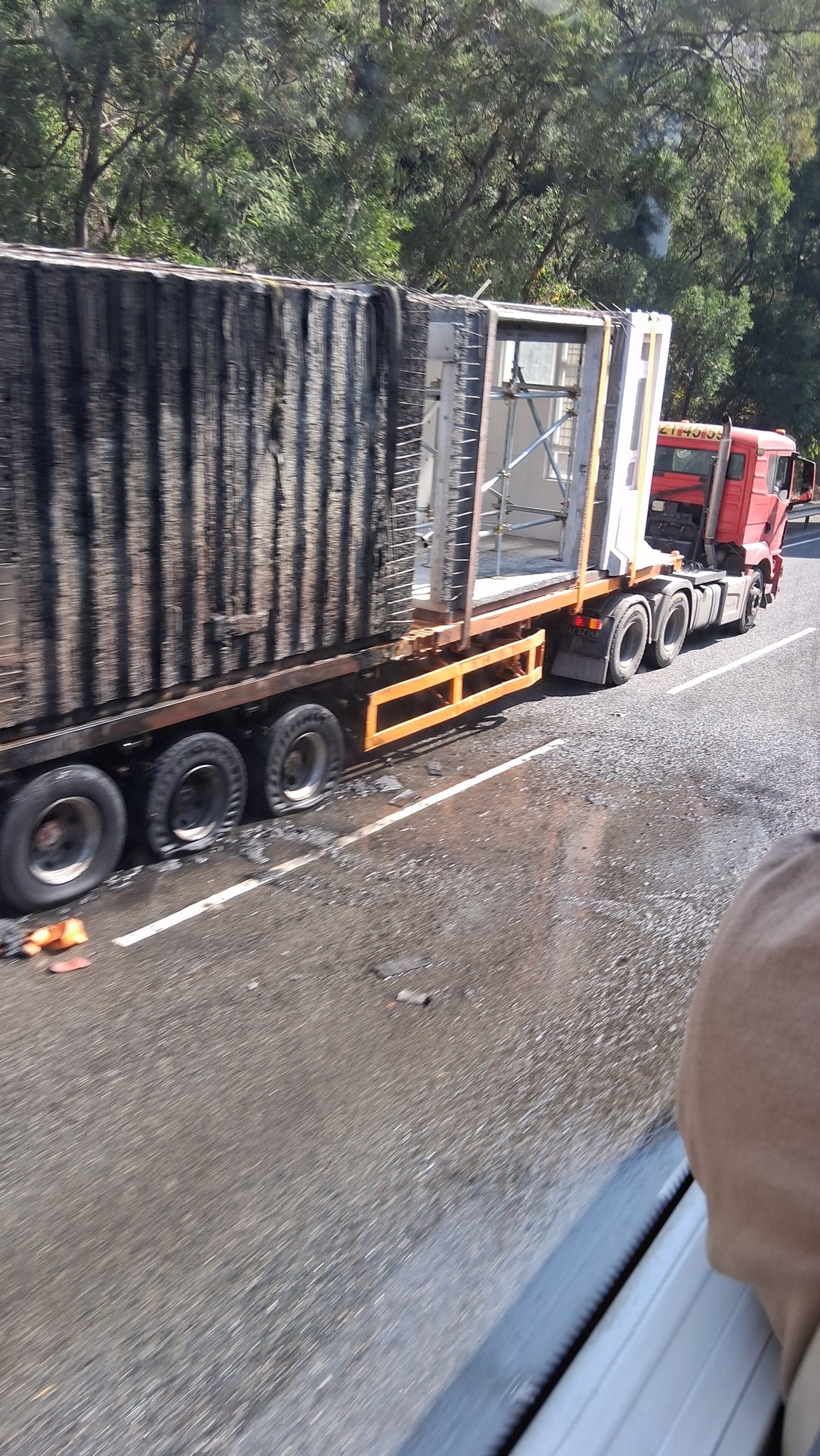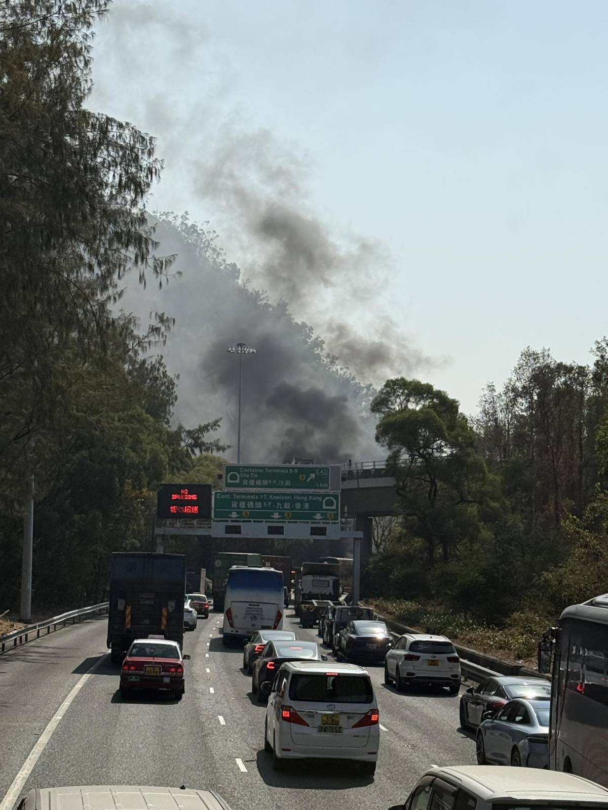 【點新聞報道】今日(19日)11時42分,一輛貨櫃車載着建築材料沿汀九橋往九龍方向行駛,其間車尾着火,貨車司機棄車逃生報警,消防接報到場開喉灌救,15分鐘後將火撲熄,事件中無人受傷,初步懷疑車尾過熱肇禍。