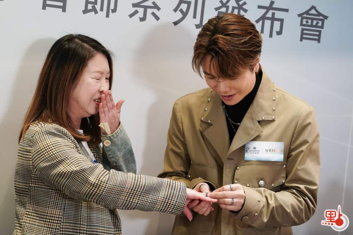 【點新聞報道】歌手張敬軒(軒仔)今日(19日)與英皇珠寶攜手,推出全新珠寶系列「witHins」,英皇集團主席楊受成等高層均到場支持。此次合作是一個巧妙的雙關:張敬軒英文名「Hins」與品牌名暗合,融入其人生哲學及當下心境。由於軒仔已有兩個半月沒有公開露面,故發布會周圍聚集大批粉絲,擠滿發布會軒尼詩道。