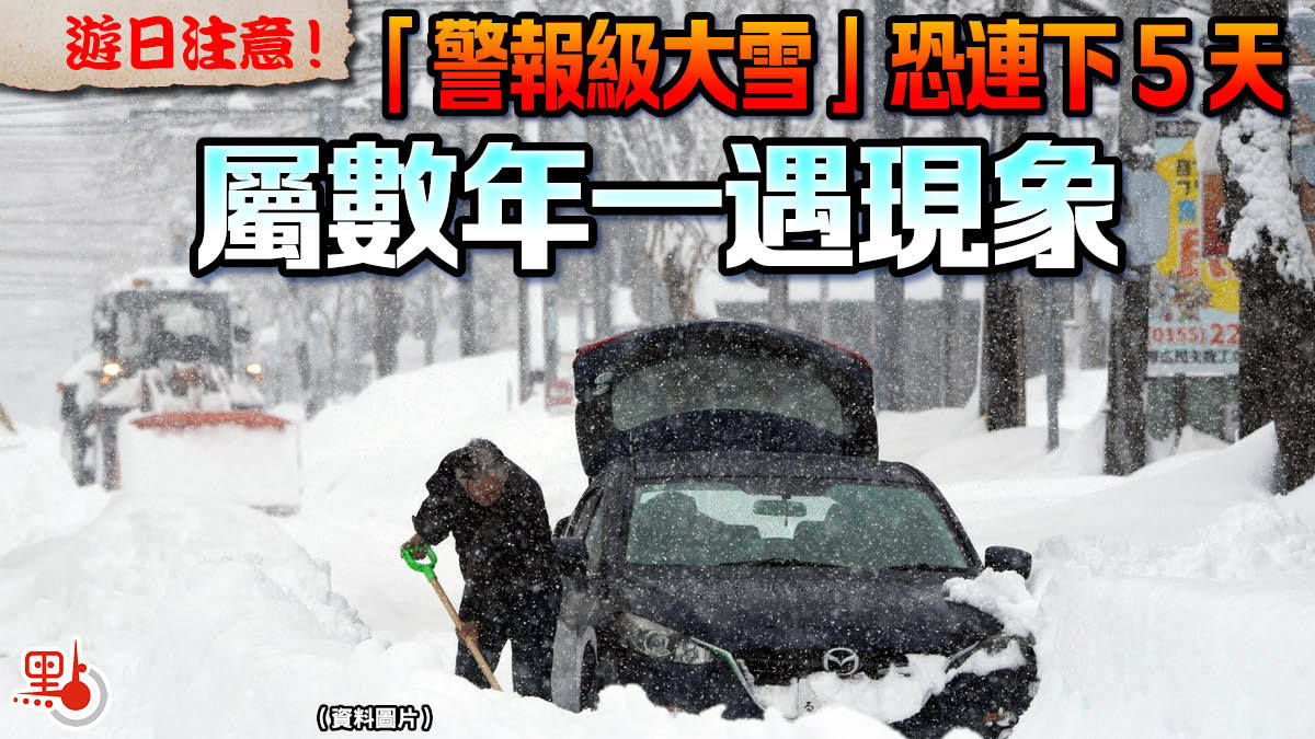 【點新聞報道】日本氣象廳與國土交通省周一 (19日)下午召開緊急記者會表示,從21日起,日本海側地區恐連續5天出現「警報級大雪」,是數年才有一次的超長持續降雪,呼籲民眾高度警戒。