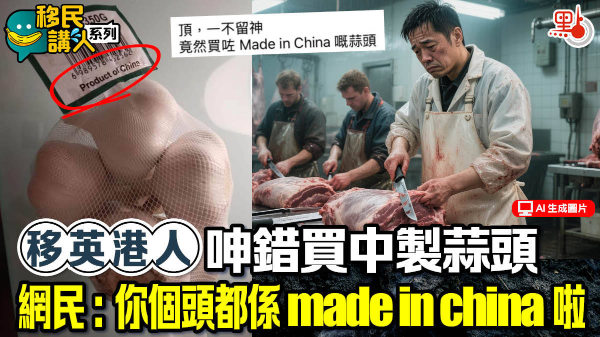 一名移港男在fb開設專頁,用作互相交流英國飲食資訊,超市及街市食材,食譜分享。從其專頁個人簡介的相片,可見背景似在食肆廚房,樓主亦身穿廚師服,捧着一碟菜餚燦笑。而樓主日前發帖,寫道:「頂,一不留神,竟然買咗Made in China嘅蒜頭」,從其上載的相片可見,有一袋標示「Product of China」的蒜頭。
