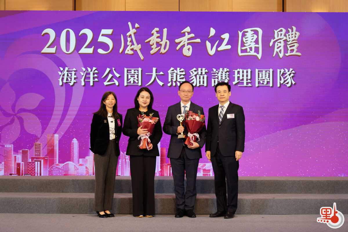 【點新聞報道】由香港大公文匯傳媒集團主辦、香港賽馬會全力支持、新鴻基地產發展有限公司和中國宏橋集團贊助支持的「2025感動香江」頒獎典禮今日(20日)於香港會議展覽中心隆重舉行。海洋公園大熊貓護理團隊榮獲「2025感動香江」團體獎,20餘載光陰流轉,該團隊以專業與匠心為國寶築起溫暖之家。從安安、佳佳初臨香江,到盈盈、樂樂接力赴港,再到本土首對熊貓幼崽加加、得得呱呱墜地,每一隻熊貓的生命軌跡,都鐫刻着他們日夜不變的堅守。