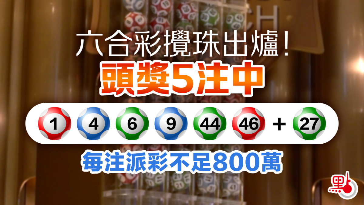 【點新聞報道】今晚(20日)第8期六合彩攪珠結果:1、4、6、9、44、46,特別號碼:27