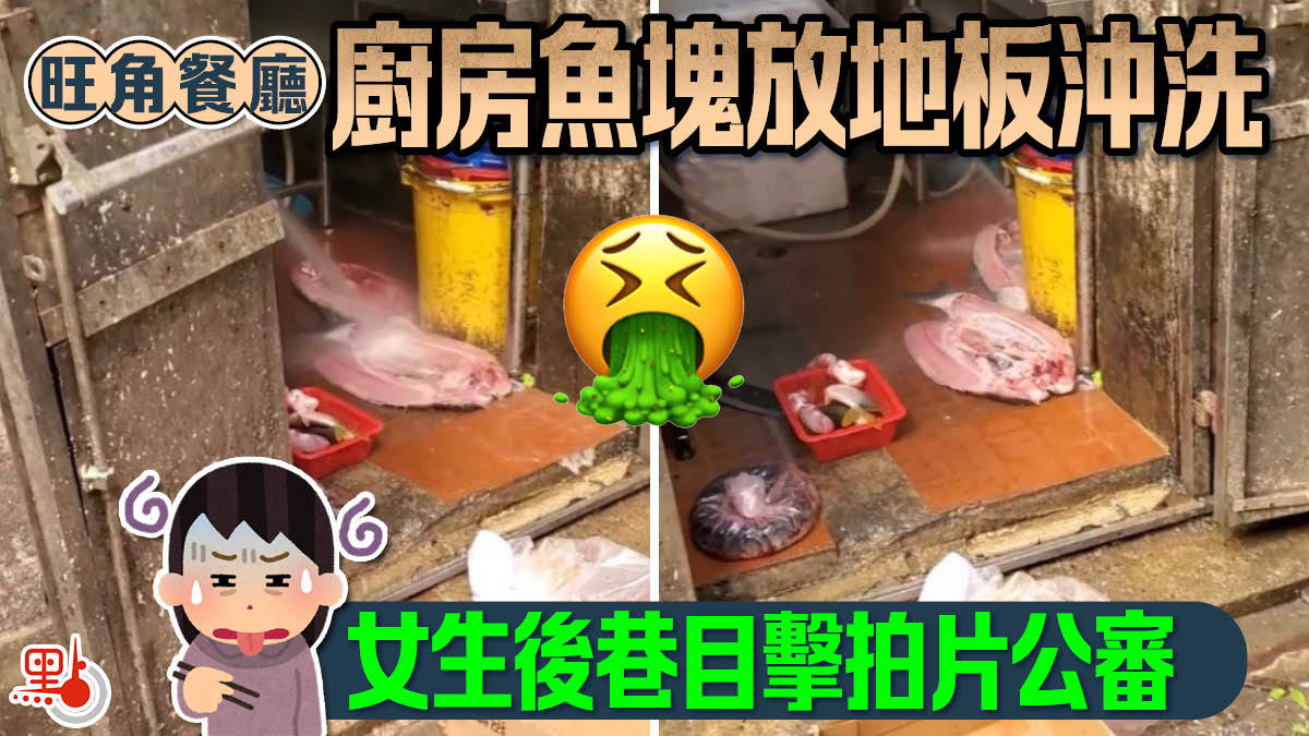 該名女生在fb群組「香港交通及突發事故報料區」上載影片,並留言表示「加味了」。從影片可見,她經過旺角一間餐廳後巷時,發現廚房門大開,一名員工將已劏好的魚塊放置在地板上,然後用水喉進行沖洗。惟後巷的衞生環境非常惡劣,廚房門外的渠邊有膠袋、紙盒、鐵罐等垃圾。