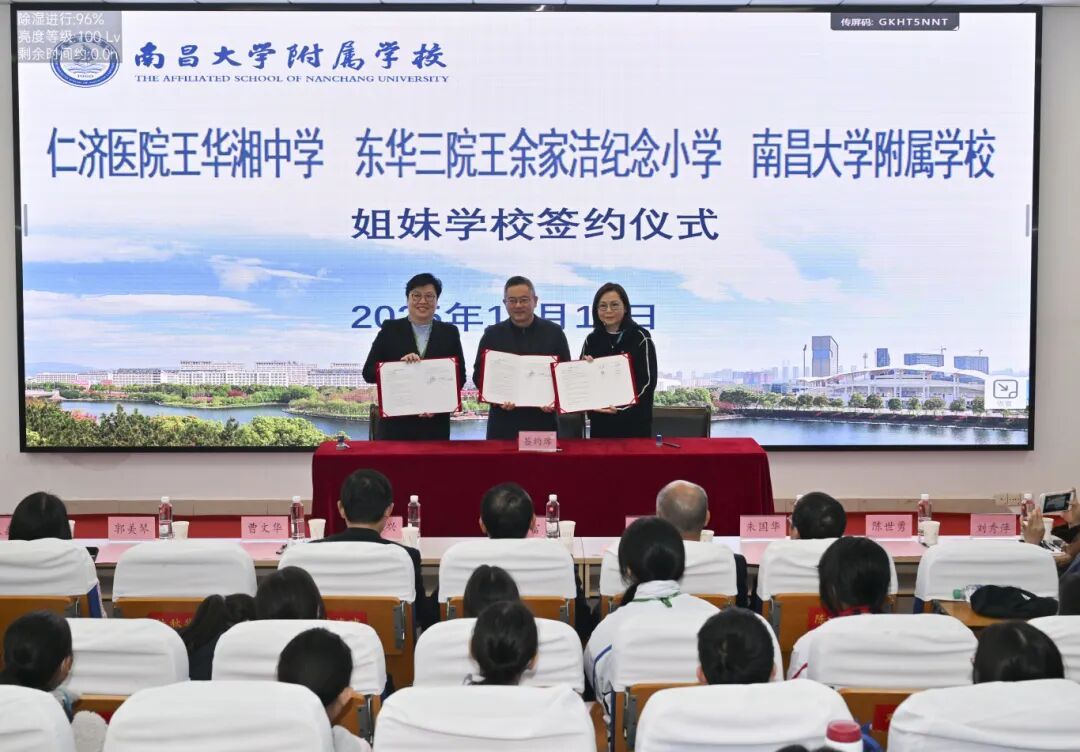 翌日,交流團前往南昌大學附屬學校進行參訪 。仁濟醫院王華湘中學文嘉燕校長帶領兩地師生進行了深入的互動與交流,並舉行了隆重的姊妹學校簽約儀式,進一步鞏固了兩校的合作關係。文嘉燕校長反映,透過與南昌大學附屬學校蒂結姊妹學校,能進一步深化贛港情誼,推動學術交流,讓港贛兩地優勢互補,攜手培育具國家觀念的未來棟樑。隨後,師生登上了享有「江南三大名樓」之首美譽的「滕王閣」 ,在歷史的迴廊中感受古人的文采風流,體驗贛文化的深厚底蘊。