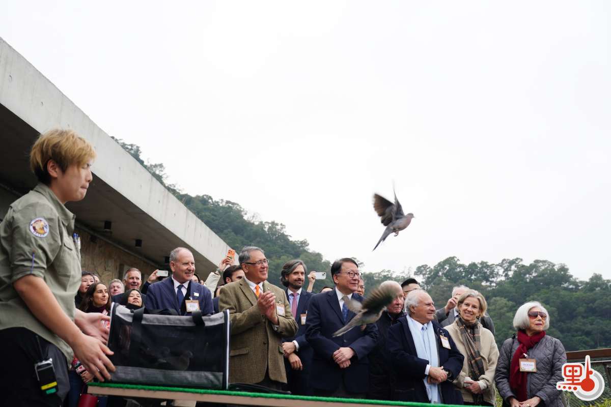 典禮尾聲,全體嘉賓見證一場雀鳥野放紀念儀式。一批經嘉道理農場暨植物園野生動物拯救中心治療康復的本地原生珠頸斑鳩,於開幕典禮上回到大自然。該中心自1994年成立以來,已成功拯救逾76,000隻野生動物。