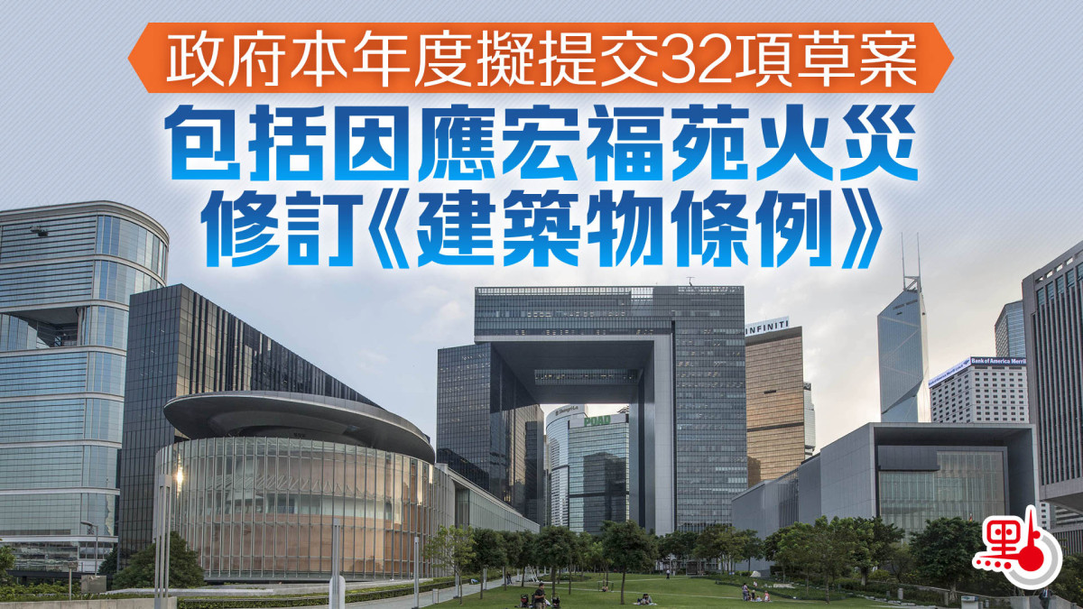 下半年度提出的《建築物(修訂)條例草案》建議修訂《建築物條例》(第123章),以加強對私人樓宇及建築工程的規管制度,包括提高對不遵辦法定通知或命令的阻嚇作用、加強對嚴重僭建物的執法力度、調整小型工程監管制度的適用範圍及透過加強對承建商及其主要人員的規管等提升建築工程安全,以及因應大埔宏福苑火災後所啟動的調查及檢視工作,引入其他修訂以提升大型維修工程的安全。