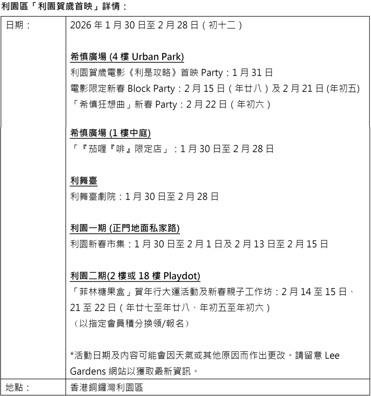 今個農曆新年,利園帶來「利園賀歲首映」主題活動,將多套賀年電影元素呈現大家眼前,讓各位瞬間置身於新年園區的懷舊裝置及一系列互動體驗區中,迎接好運新年!