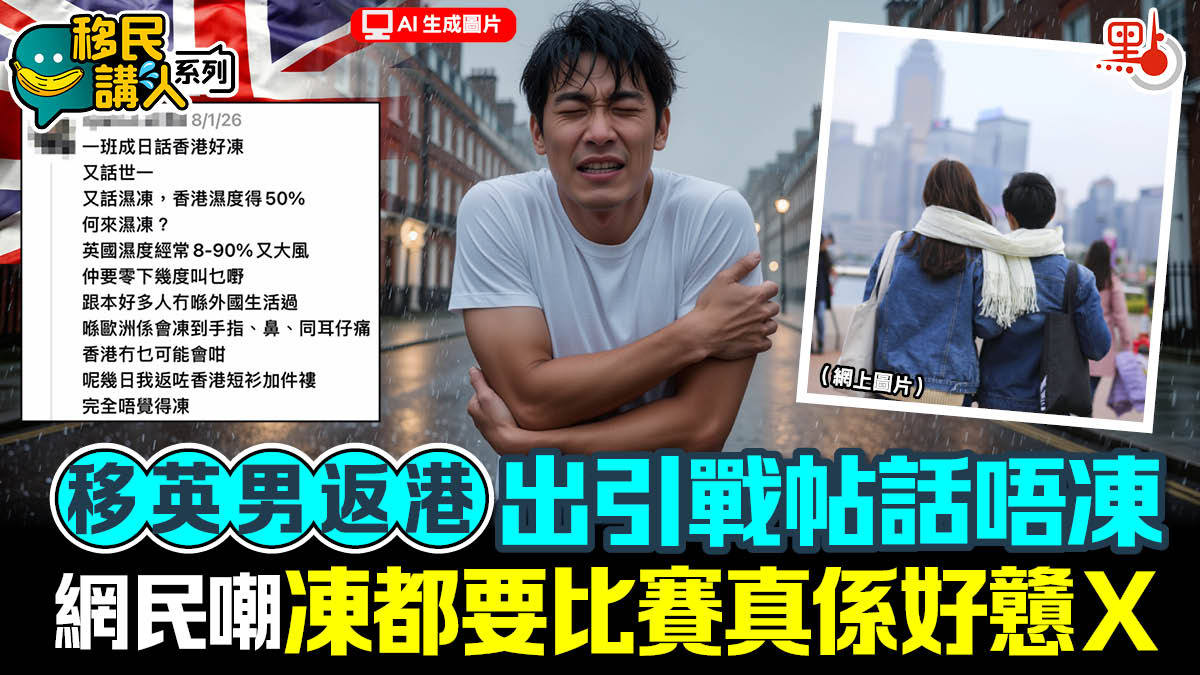 【點新聞報道】「大寒」過後,本港天氣仍然寒冷,寒冷天氣警告持續生效,不少市民都穿了衣服禦寒。不過,一名近日返港的移英港男就大唱反調,話香港同英國比較一啲都唔凍,「呢幾日我返咗香港短衫加件褸,完全唔覺得凍」,結果引來大班網民激辯。