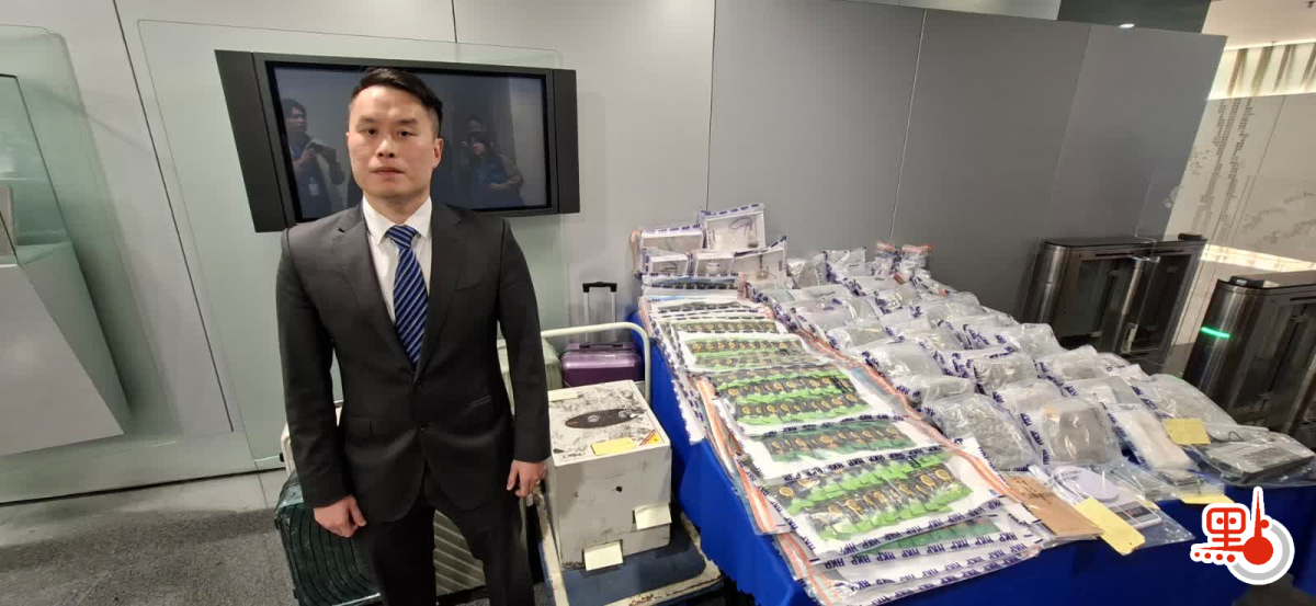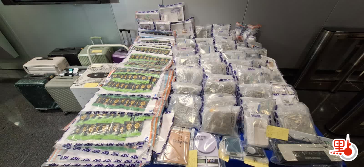 其後,人員把他押返上址單位,在單位內發現多3名本地男子及2名本地女子,並檢獲約20公斤大麻、800克可卡因、1800粒依托咪酯電子煙彈、1100支電子大麻煙、2樽共重2公斤大麻油,以及毒品吸食工具及包裝工具。上述4男2女涉嫌「販運危險藥物」及「管有工具可作吸食毒品用途」罪被捕,檢獲的毒品總值約520萬元。6名被捕人士年齡介乎37歲至53歲,報稱無業、裝修工人及貨車司機,他們仍被扣留調查。