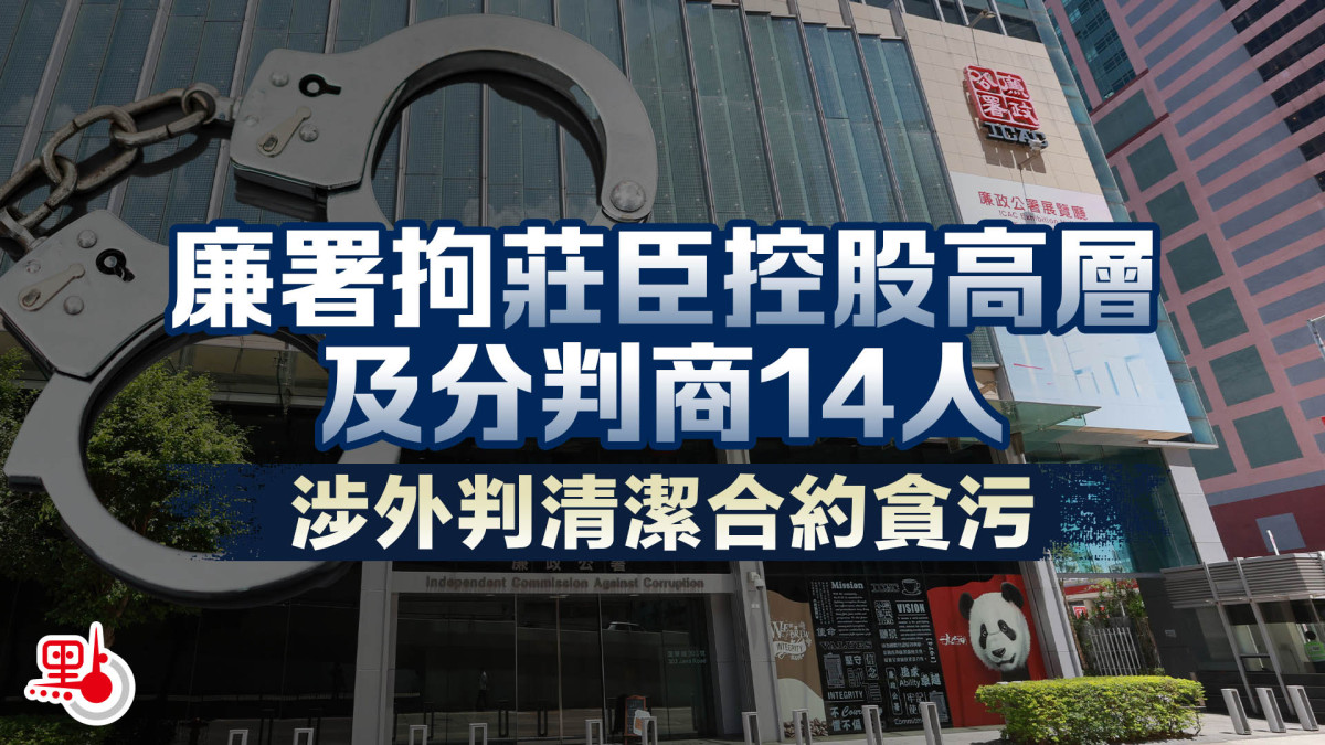 廉政公署發言人晚上回應傳媒查詢,證實日前拘捕14名人士,包括一間提供清潔服務的上市公司一名高級管理層成員及兩名經理級僱員,懷疑他們串謀向三間分判商收受利益,以批出多份合約予該些分判商。有關合約涉及上市公司為商業機構提供的服務,以及向上市公司提供車輛及相關維修保養,但並不牽涉與政府簽訂的合約。
