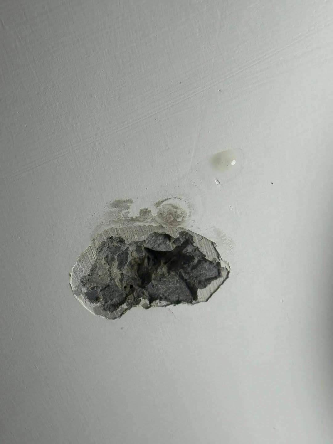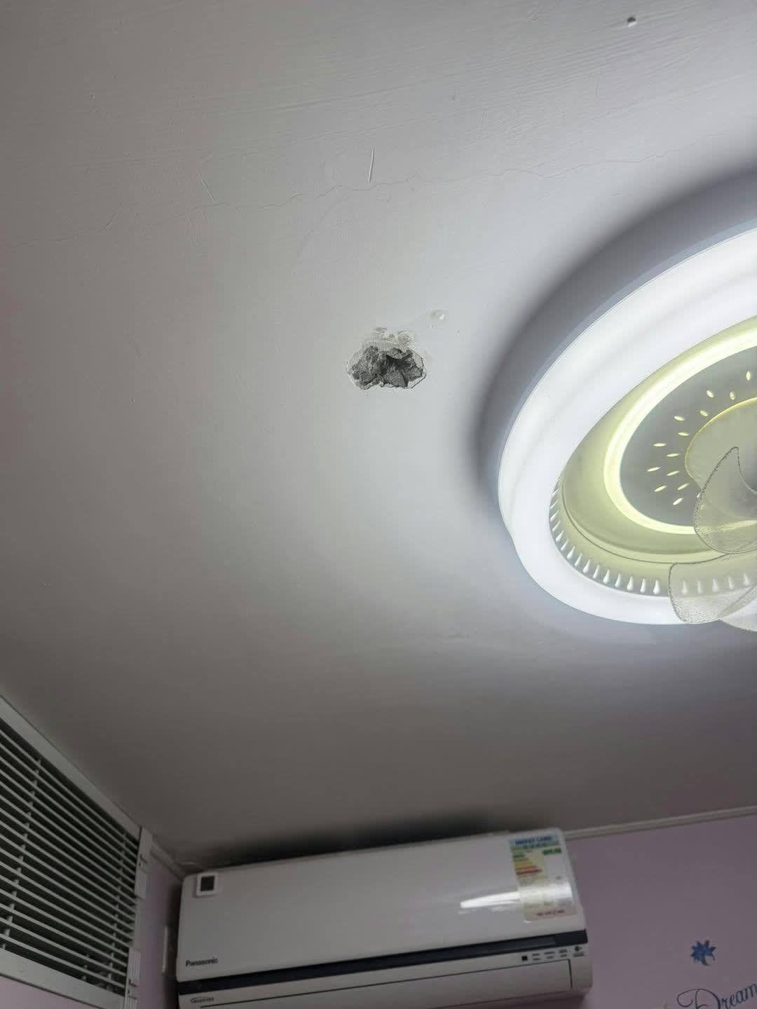 昨日下午,案發後有人在Facebook群組重提當日這宗案件,並上載兩張天花板損毁圖片,帖文指當日疑犯不單鑽穿天花板淋下一些臭水,據知相關液體為尿及煙灰水。