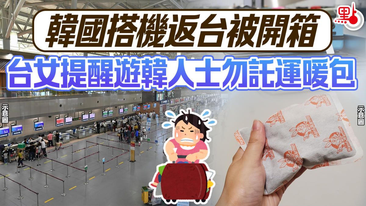 【點新聞報道】近日有台女於社交平台發文提醒,指從韓國搭機返台時,暖包無論是否開封,均禁止放入託運行李,否則可能需接受機場開箱檢查。