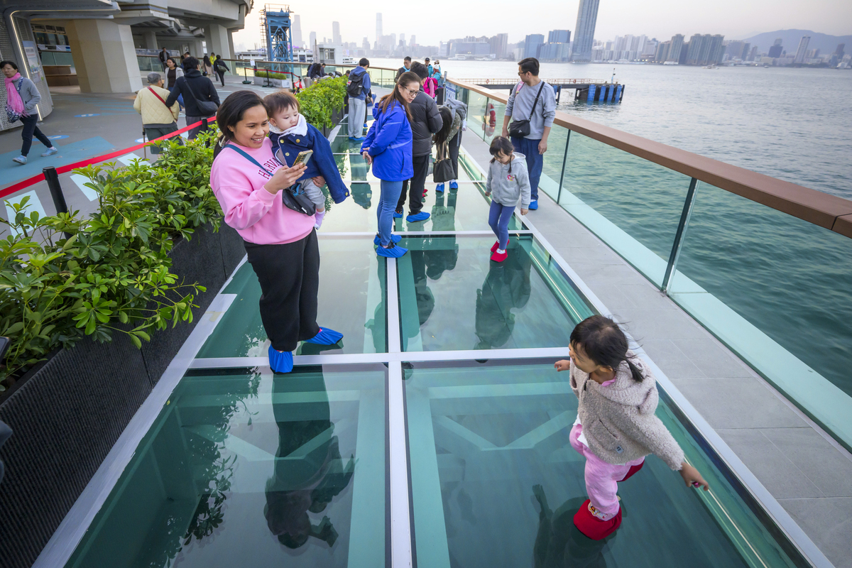 這條與海為鄰的板道不但地理位置獨特,景色宜人,土木工程拓展署高級工程師楊思翔表示,板道的東段和較早啟用的西段一樣,均屬海濱共享空間,設有共享徑和行人專用路徑,並提供多項特色設施讓大眾使用。其中,體驗式玻璃觀景台讓遊人感受腳下的維港,近電照街的寵物友善區則讓市民與牽繩寵物輕鬆「放電」,數個多功能開放式空間更可供市民和團體申請舉辦展覽、藝術和社區活動。