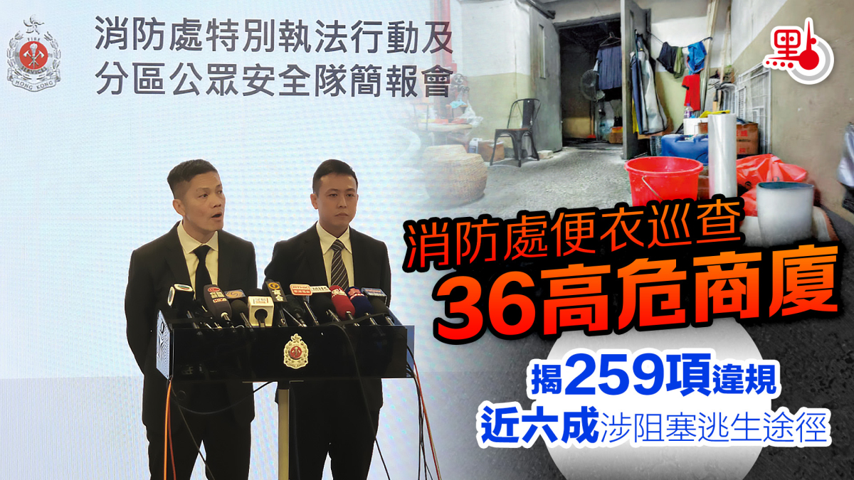【點新聞報道】消防處日前針對36棟高火警風險商業大廈展開便衣特別巡查,今日(25日)公布行動結果。