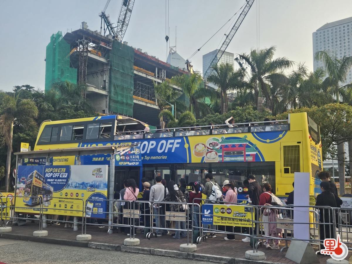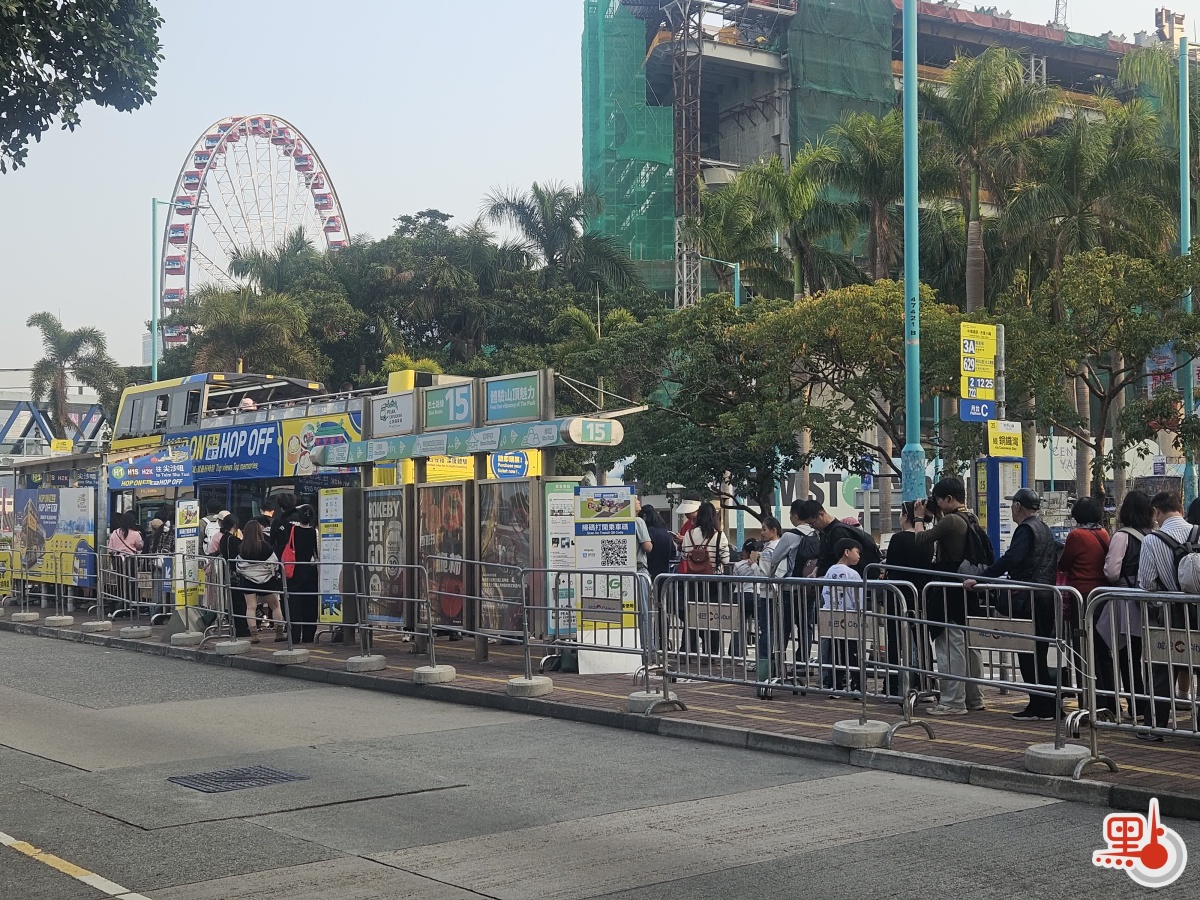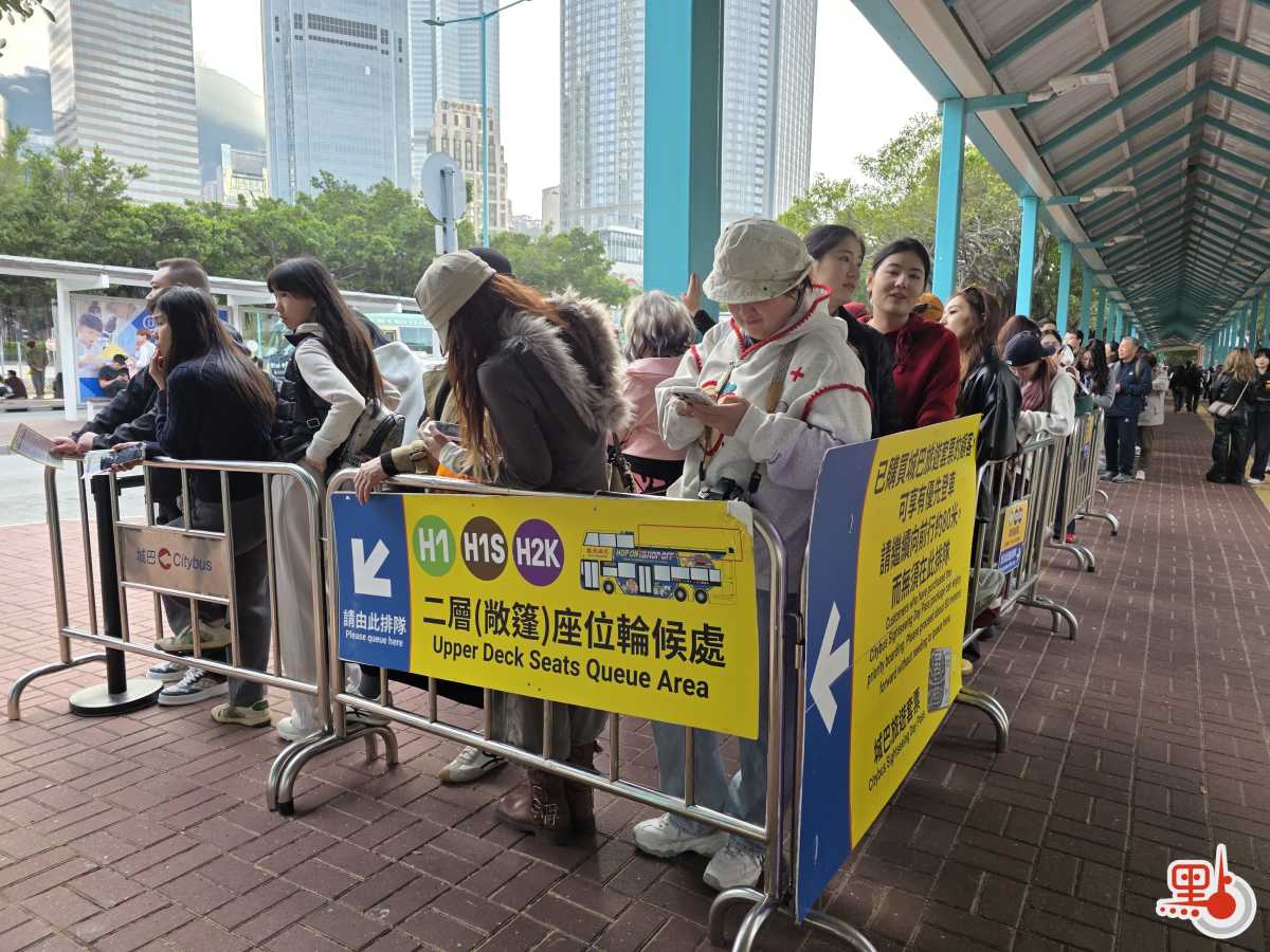 在中環碼頭巴士車站,現場約200人輪候城巴觀光巴士;而打卡熱點富豪雪糕車同樣大排長龍,在尖沙咀碼頭,約30人排隊購買雪糕;在中環碼頭,亦有數十人排隊輪候購買富豪雪糕。