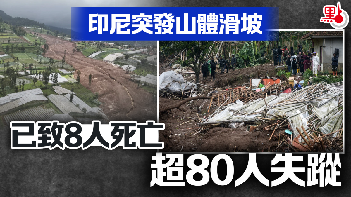 【點新聞報道】據中新社報道,當地時間24日,印尼爪哇島發生山體滑坡,造成至少8人死亡、80餘人失蹤。報道稱,此次災害由強降雨引發,於凌晨襲擊爪哇西萬隆地區的村莊,掩埋了居民區。目前當地的地質情況仍不穩定,當地搜救機構表示,他們正在進行人工挖掘、用水泵沖洗泥土,並使用無人機搜尋遇難者。