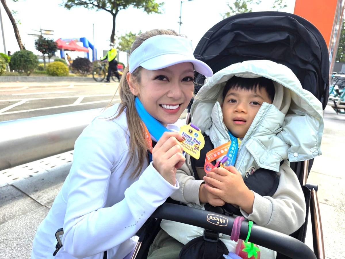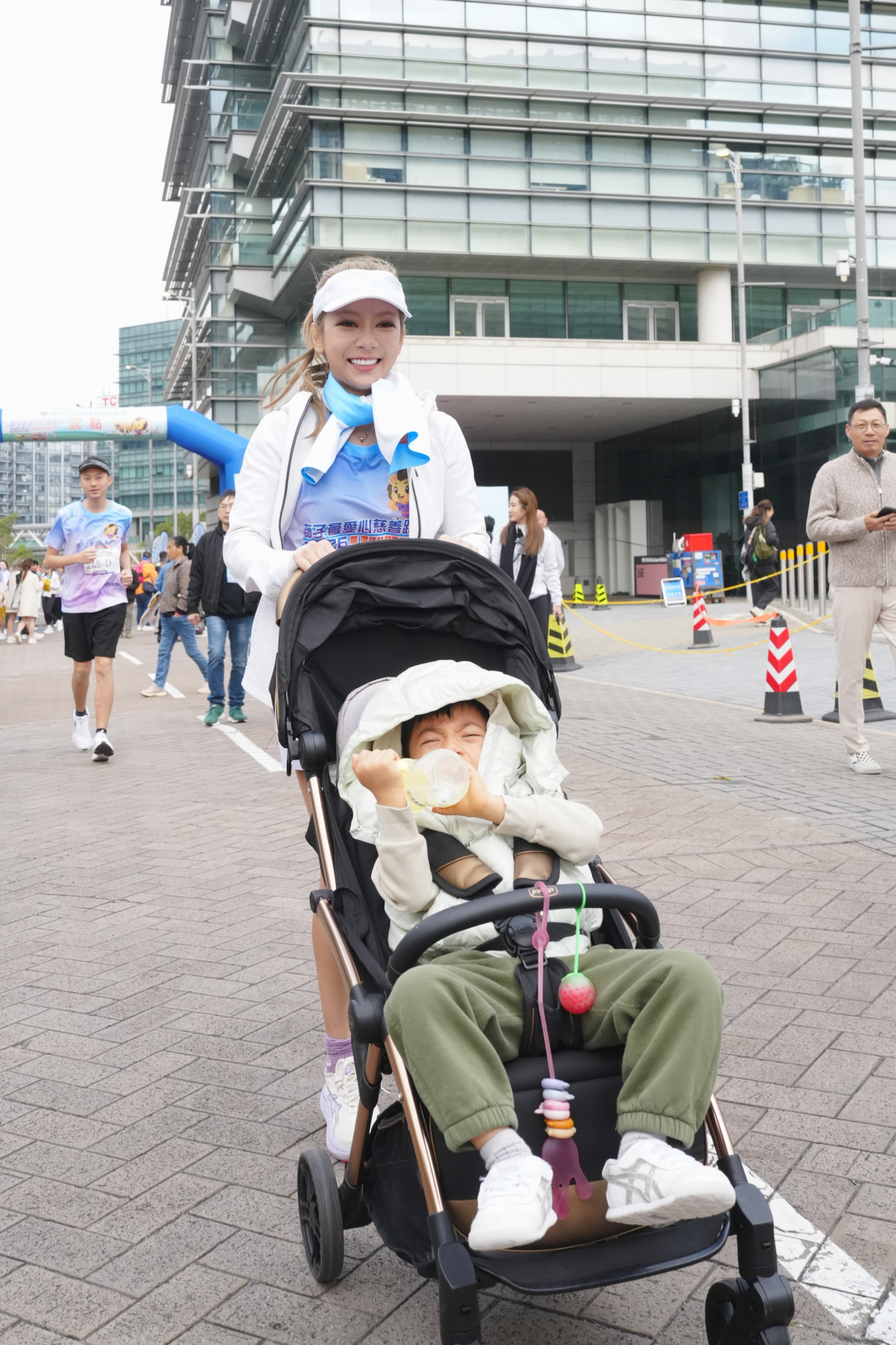她表示推着BB車跑步最初不慣有點吃力,但只要囝囝喜歡,自己有點累亦是值得。「我保持一個安全速度,始終人很多,安全為上,希望有日他懂得步行時一齊落場跑。好難得兩母子一齊攞獎牌,衝線時,他見到好多人,開始喊,一攞獎便很得意笑,摸住金牌又開心了。」