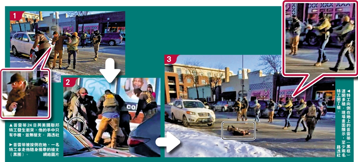 •1月24日,聯邦特工在明尼阿波利斯市槍殺37歲男子普雷蒂。普雷蒂是美國公民,職業為護士。現場視頻顯示,特工在5秒內向他開了至少10槍。