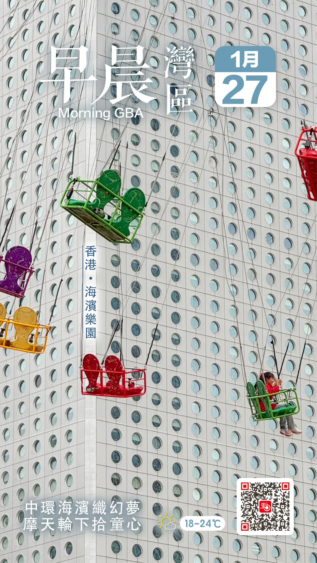 【點新聞報道】2026年的第一個月即將結束,新春的腳步已清晰可聞。時光如水,從不等人,恰如香港這座城,永遠以分秒必爭的步履向前飛馳。然而就在這奔忙的節奏中,點新聞今日(27日)邀你暫緩腳步,步入中環海濱的一座夢幻遊樂園——在飛天鞦韆的溫柔注視下,重拾一場天真與浪漫交織的城市幻夢!
