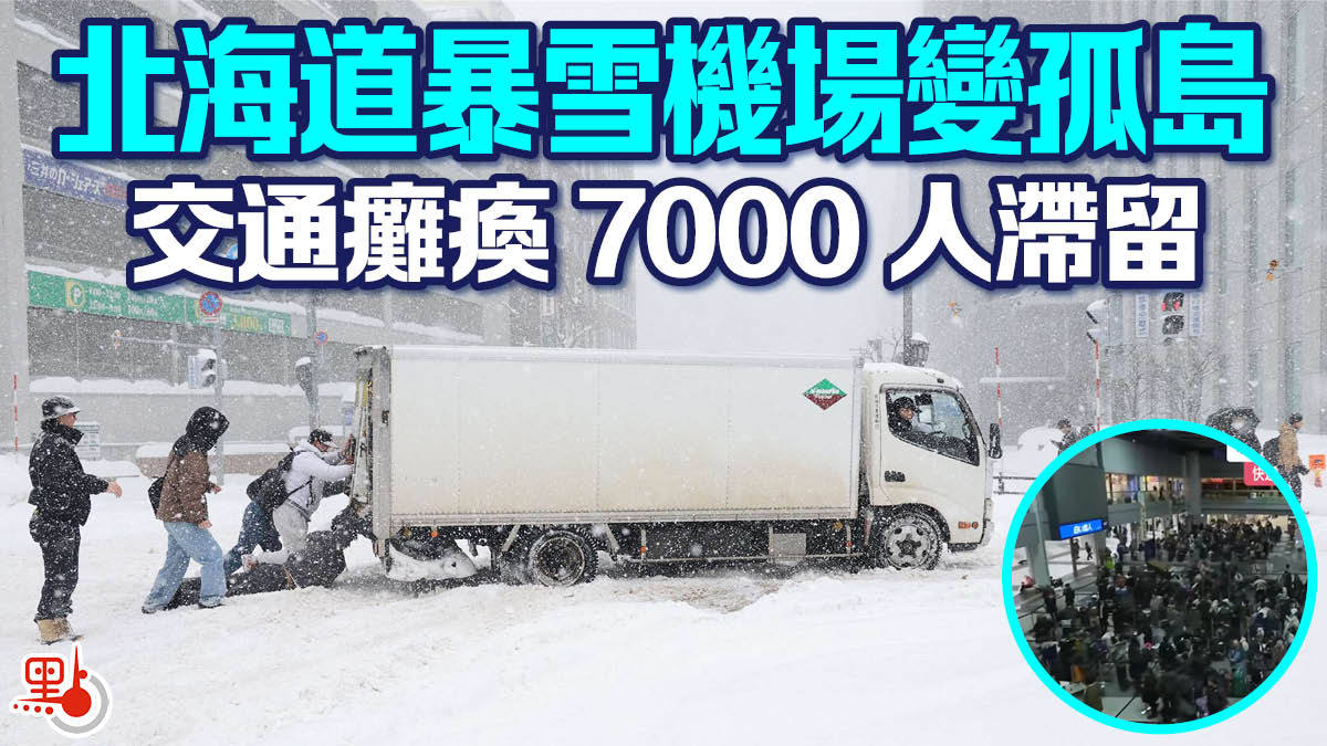 【點新聞報道】日本連日受到今季最強寒流侵襲,北海道札幌市周日(25日)錄得破紀錄降雪量,導致當地交通混亂,連接札幌至新千歲機場的JR列車及巴士等服務停頓,約7,000人被迫在機場通宵滯留,就連打地鋪也一位難求。