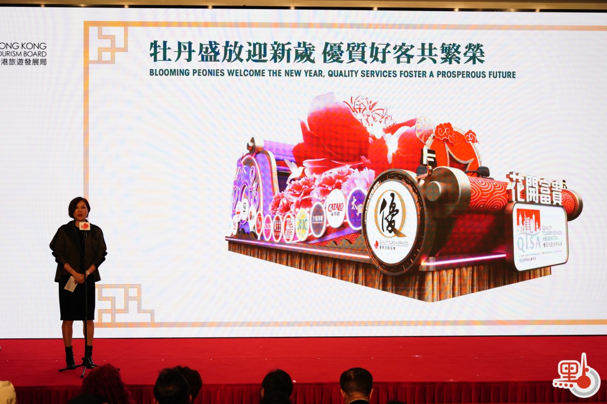 10.優質旅遊服務協會:以「牡丹盛放迎新歲」為設計靈感,彰顯香港零售、餐飲及旅遊業的優質服務與蓬勃氣象。
