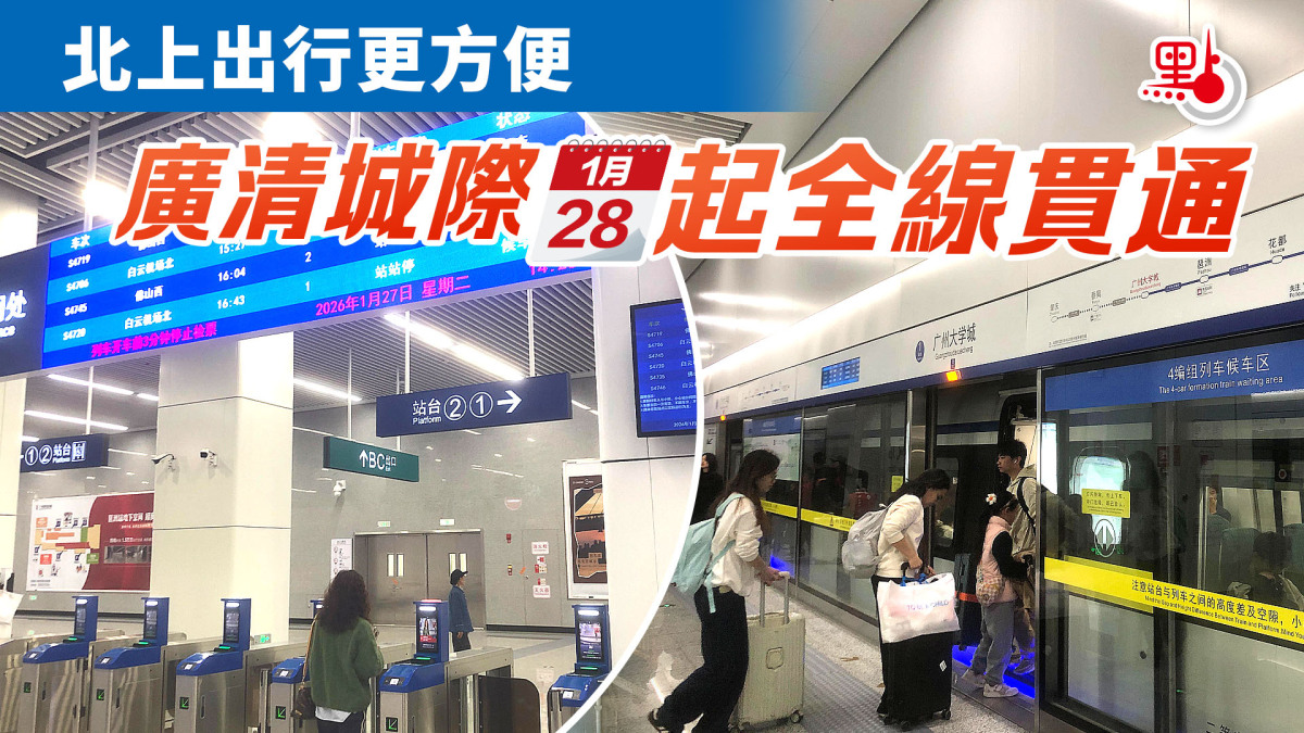 【點新聞報道】灣區往返粵北地區新增城際鐵路,港人北上粵北出行更方便。明日(28日)起,廣清城際鐵路南延線正式開通運營,也意味着廣清城際全線貫通。廣清城際將採用「站站停+大站快車」公交化運營模式,廣州白雲站與廣州北站兩大樞紐實現16分鐘互通。屆時,由廣東城際運營公司運營的城際鐵路里程增至442.5公里,實現嶺南通與香港八達通聯名卡等多種支付方式「刷卡即進、進站即走」,「軌道上的大灣區」進一步完善成型。