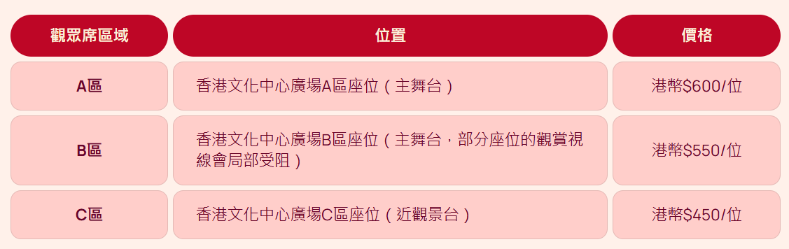 「國泰新春國際匯演之夜」於香港文化中心設有觀眾座席,門票分港幣600元、550元及450元,將在2月7日(星期六)上午8時起,於旅發局九龍旅客諮詢中心發售。每人每次限購4張入場券,先到先得,售完即止。