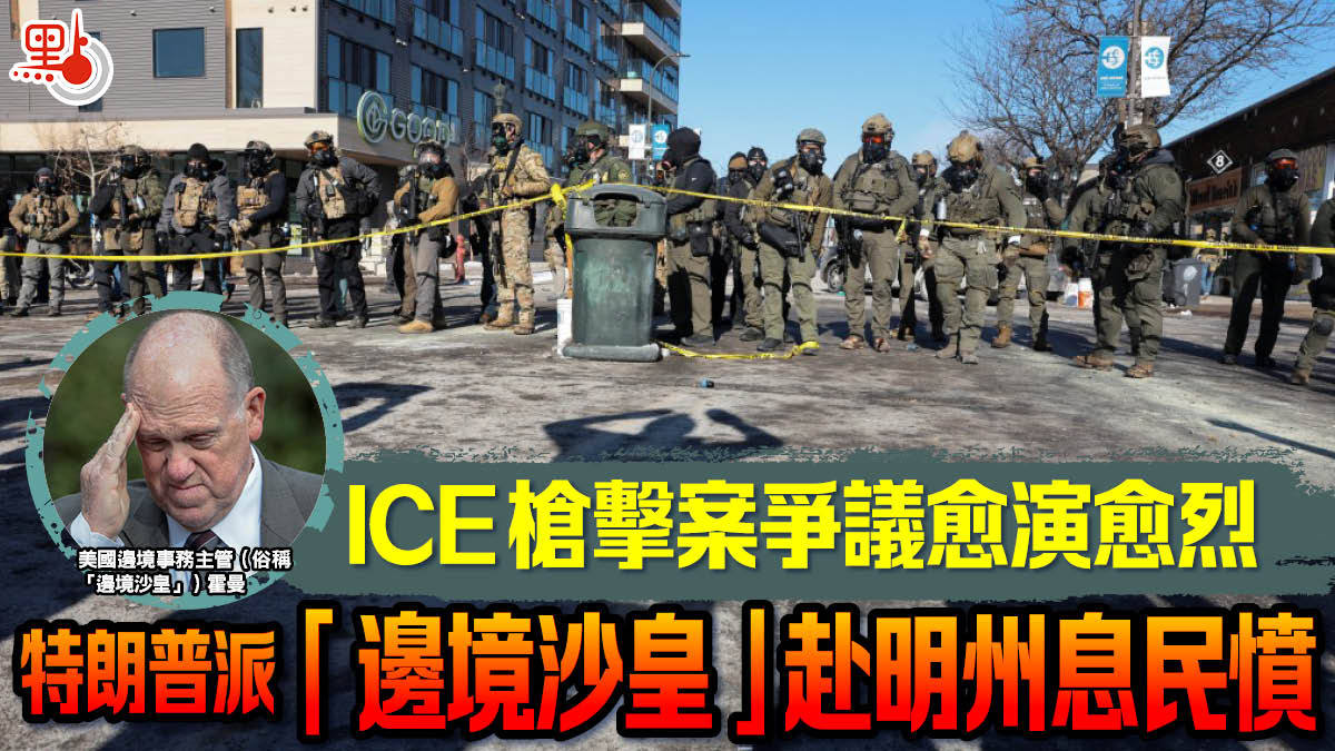 【點新聞報道】美國移民及海關執法局(ICE)探員擊斃美國公民事件,在明尼蘇達州明尼阿波利斯市引發的爭議愈演愈烈,連日炮轟遇害者和政敵的美國總統特朗普似乎有意放低姿態、平息風波。特朗普周一(26日)宣布,他將派遣美國邊境事務主管(俗稱「邊境沙皇」)霍曼前往該市。明尼阿波利斯市長弗雷與特朗普通電話後表示,部分聯邦探員將於周二撤離當地,當局會敦促其他執法人員盡快離開。