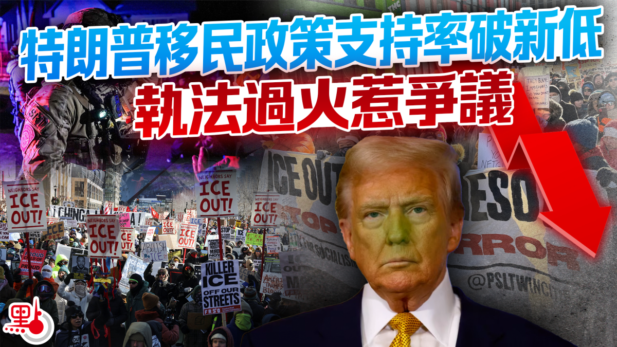 【點新聞報道】美國移民及海關執法局(ICE)暴力執法引發的抗議愈演愈烈,特朗普的支持度隨之下滑。路透社與民調機構Ipsos周一(1月26日)公布最新數據,特朗普的移民政策支持度跌至他重返白宮以來最低,過半數受訪選民坦言,特朗普政府的非法移民打擊行動愈發過火。