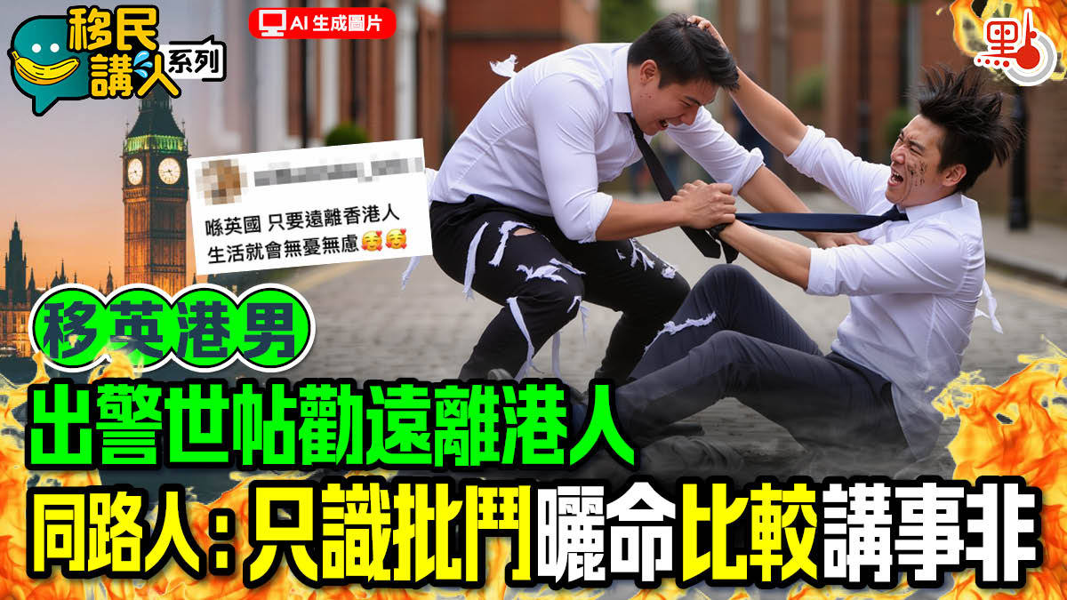 該名移英港男在社交平台threads發警世帖文,指「喺英國,只要遠離香港人,生活就會無憂無慮」。他認為,香港人以前屋邨嗰種人情味而家都無啦,指港人移民圈最鍾意搞小動作,「當你發覺班怨魂鍾意喺背後暗地搞你唱你嗰時」、「日日圍威喂專恰香港人,其實同唐人街嗰啲無分別 」。
