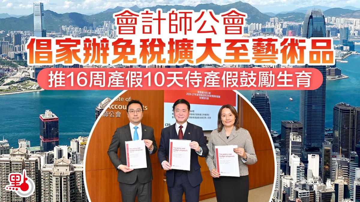 公會提出4大範疇的建議,涉及招商引資、吸引人才、增強稅制競爭力和支援可持續發展。以吸引資金為例,公會提倡為合資格區域總部的相關利潤提供為期5年的半額利得稅優惠、為在港設立合資格區域總部的內地企業提供額外兩年的稅務豁免、改良單一調整利得稅兩級制和提供限時補貼或額外稅務扣減協助中小企推動數碼轉型、將2.4億港元的家族辦公室最低資產門檻改以「管理資產總值」(AUM)計算並將免稅範圍擴大至藝術品等資產。