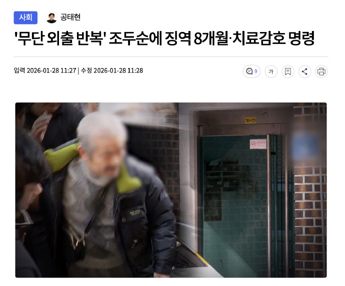 【點新聞報道】1月28日,韓國「素媛案」罪犯趙斗淳因涉嫌多次在上下學時段無正當理由違反外出限制令等而被起訴,被法院判處有期徒刑8個月,同時下達監護治療處分,宣判後立即簽發逮捕令。
