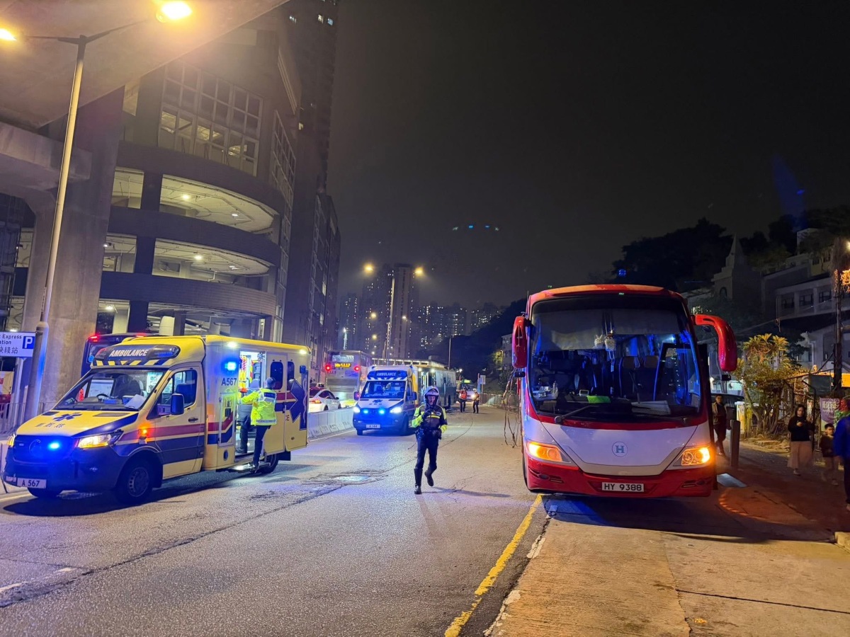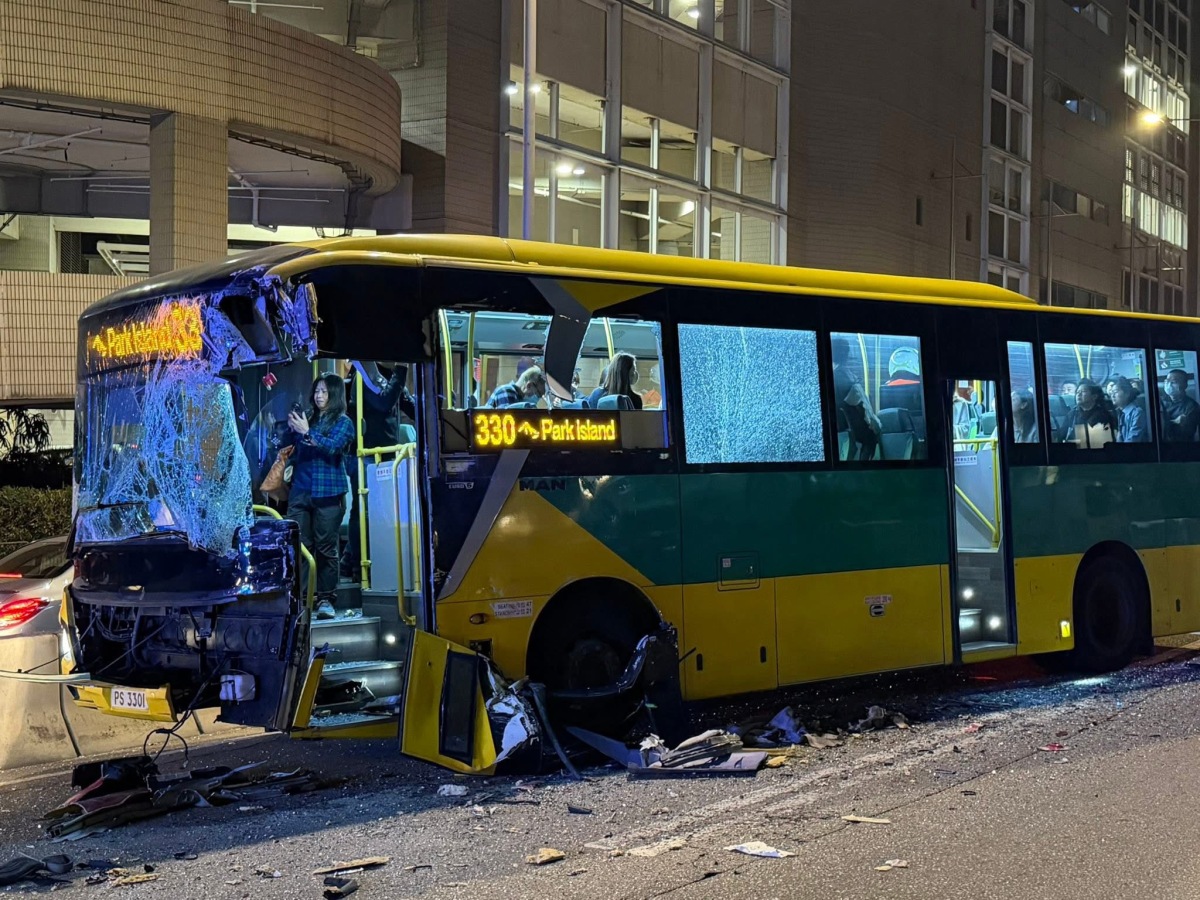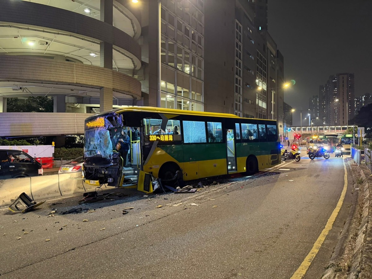 【點新聞報道】青衣發生交通意外。今日(28日)傍晚6時許,一輛開往珀麗灣的居民巴士沿青衣青敬路行駛,駛至近青衣公園對開時,與一輛旅遊巴發生相撞,致4人受傷,由救護車送院治理。