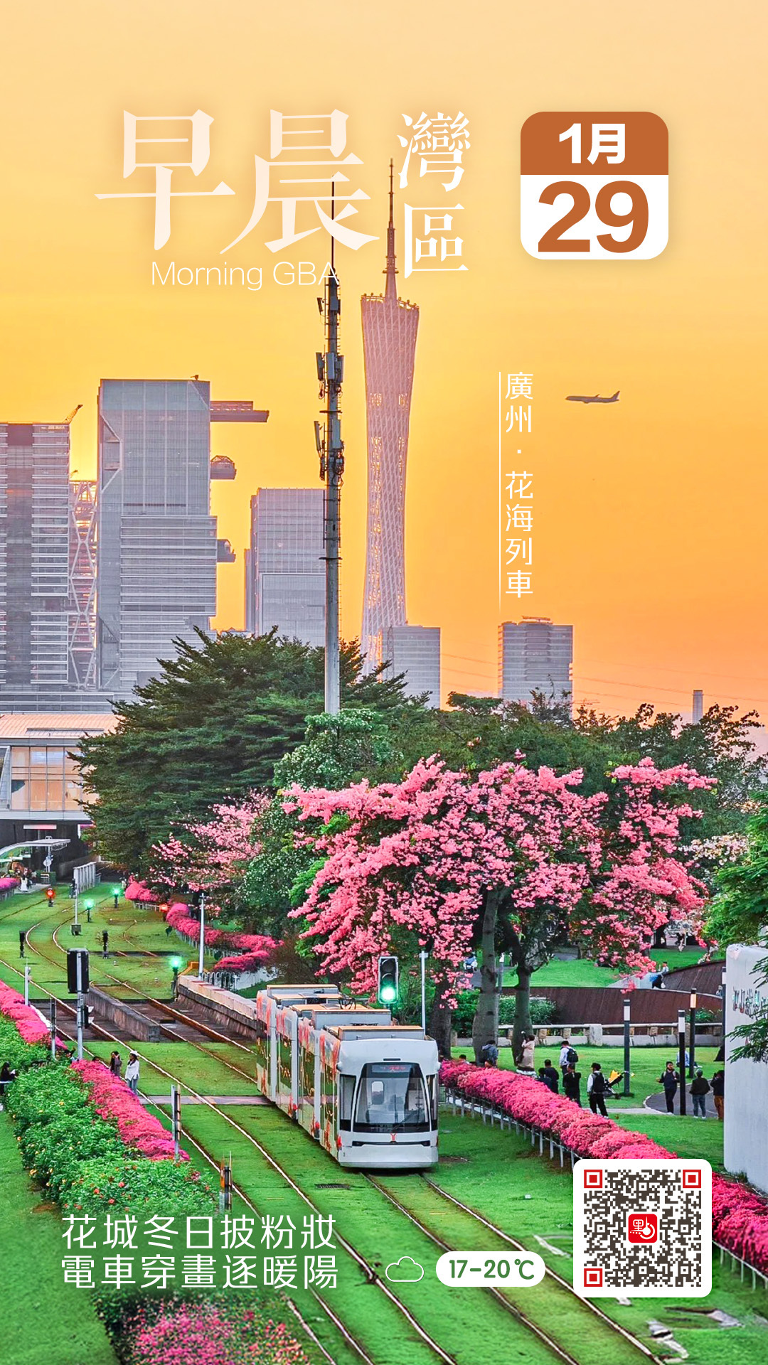拍照者可選擇晴朗天的早上或下午前往,此時光線柔和,更容易拍出令人滿意的作品。粉花、電車、夕陽三者結合,構成廣州冬日獨特的風景線,展現花城四季如春的魅力!