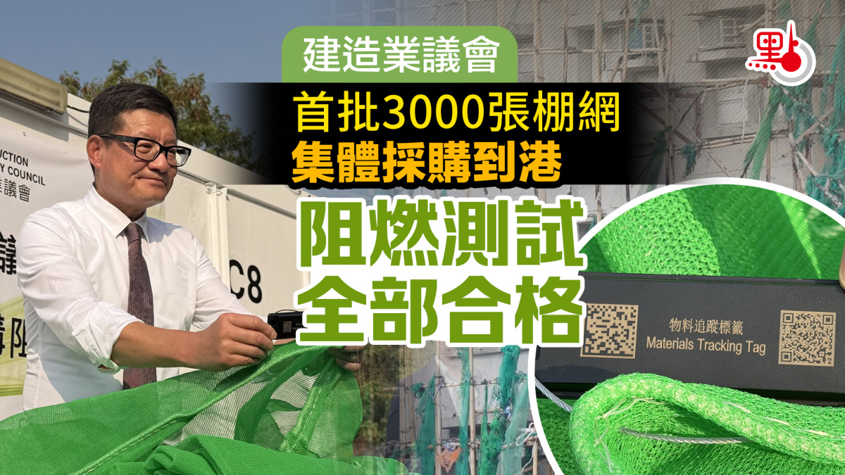 據介紹,這批安全網通過國家與香港雙重阻燃測試標準,同時每張安全網均嵌入RFID晶片及二維碼,記錄生產、運輸至現場的每個環節,並可查閱其阻燃測試報告,有效避免不合規格物料流入市場,做到「每一張都有跡可尋」。建造業議會執行總監鄭定寕表示,會盡快制定棚網生產商「白名單」,供日後其他有採購需求的承建商參考。