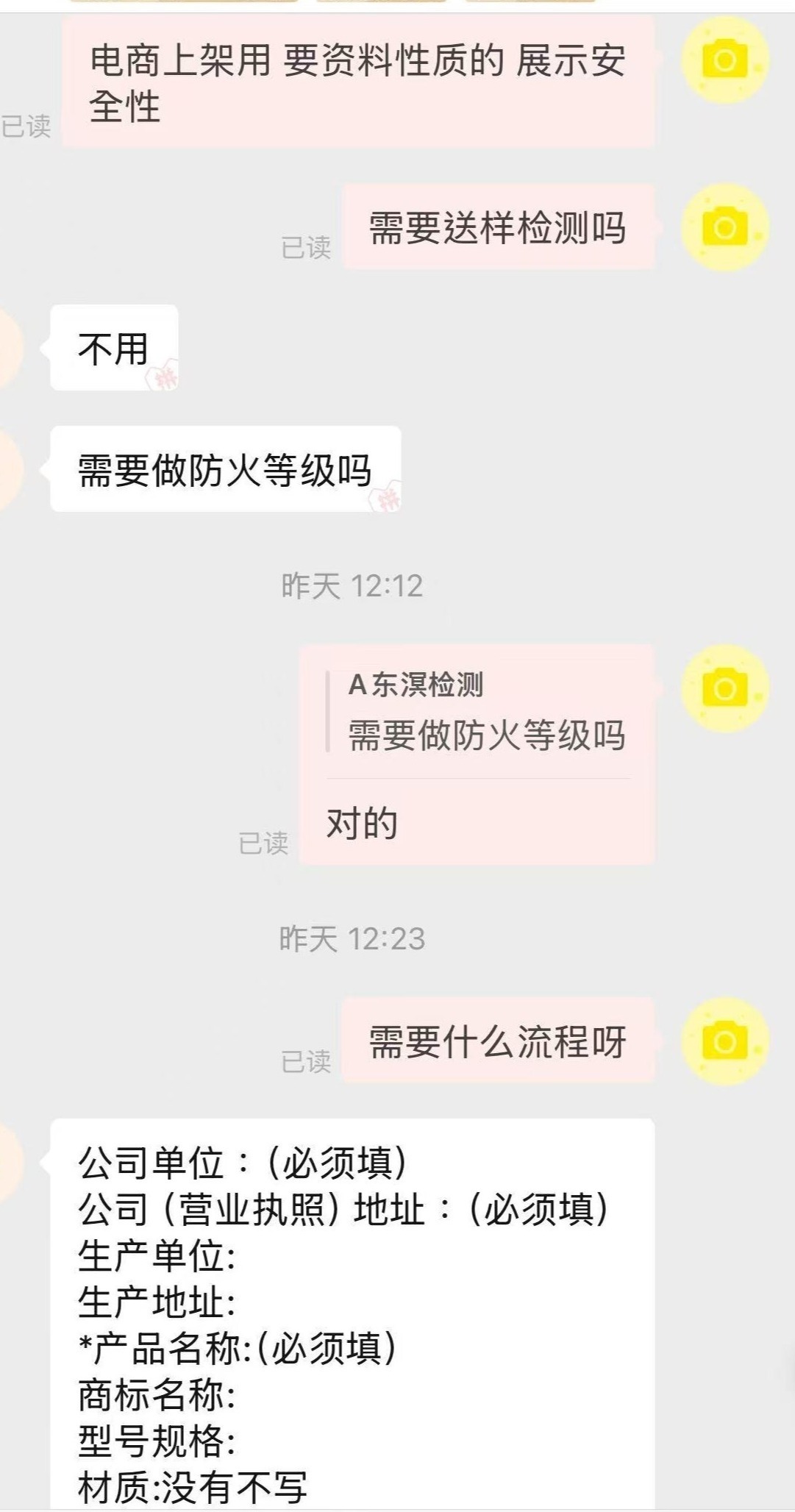 實測證明,在電商平台,消費者可在無任何資質、證明的情況下購買阻燃性未知的建築棚網,並且無需實物檢測、無需提供受檢產品的材質及規格,就可網上訂製一份自己心儀的「質檢報告」,幾乎是能夠以零專業性和安全性購得建築材料及質量合格證明。