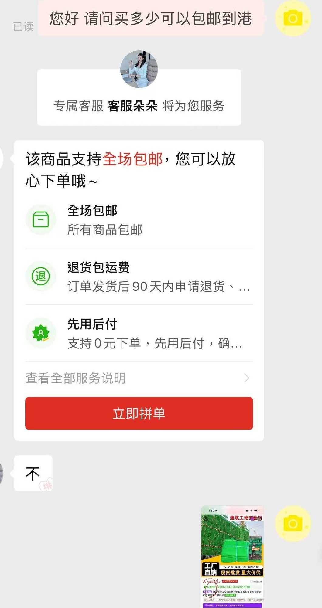 點新聞記者在跨境電商平台搜索「棚網」、「安全防墜網」等詞條,顯示逾萬件有關商品,價格多為幾十元,當中大部分都可零售包郵到港。記者扮作消費者聯繫一商家,該商家在產品描述中寫有「阻燃」、「包郵到港」字樣,但在記者表明自己是香港消費者後卻遭對方拒絕稱「現在你那邊要用阻燃的,過檢測的,你還敢買這種貨?」此說法與其主頁「阻燃」的表述完全相悖,詢問之下對方直接表明事實上產品不阻燃、不符合國標,又在記者表示只買少量用來做園藝後改口稱可以賣,並稱「你不是建築使用就沒事」。