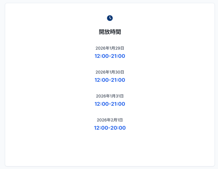 2月1日(周日)中午12時至晚上8時