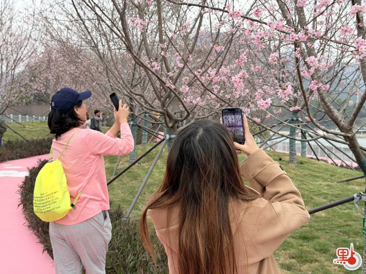機場運作執行總監姚兆聰介紹,今年是櫻花園開放第三年,園區已從最初約1萬呎擴建至約3萬呎,新開設的第三期共增加39棵櫻花樹,品種和此前一樣是適合華南地區種植的「好運來」。他續指,目前園內櫻花只開了兩三成,估計未來兩星期會完全盛開,大概在情人節前後是最佳欣賞期。