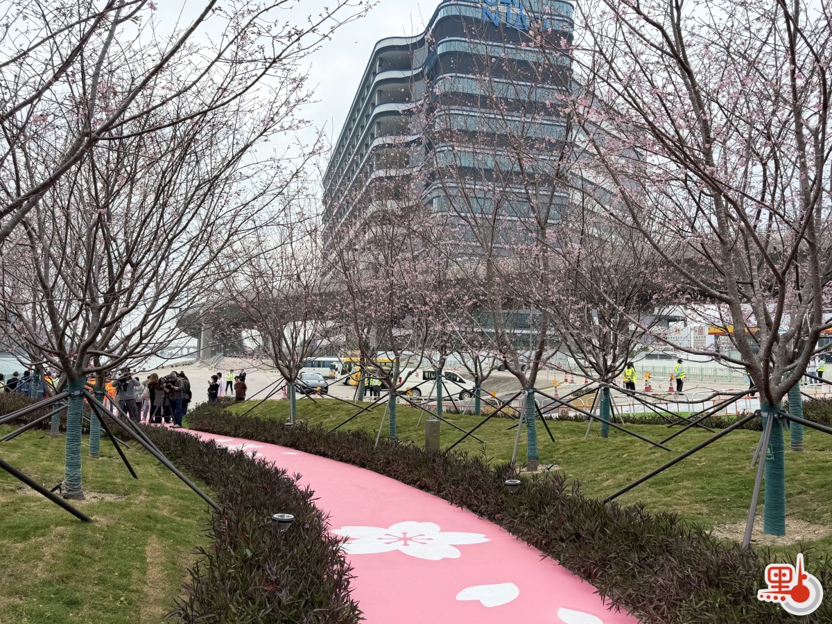【點新聞報道】一年一度的櫻花季即將來臨,香港國際機場附近、位於機場赤鱲角南路、觀景山山腳的「機場櫻花園」現已開放供公眾賞花。市民在園內欣賞粉紅花海時,抬頭還可見到纜車經過,該特別美景近年來已成為熱門的打卡拍照點。