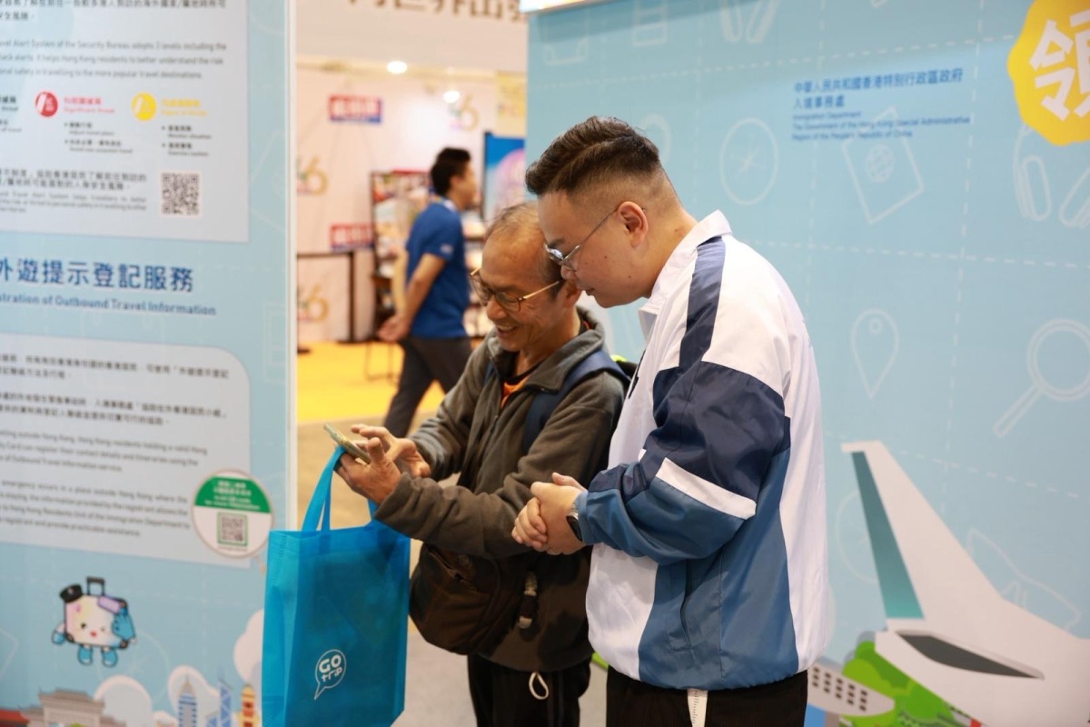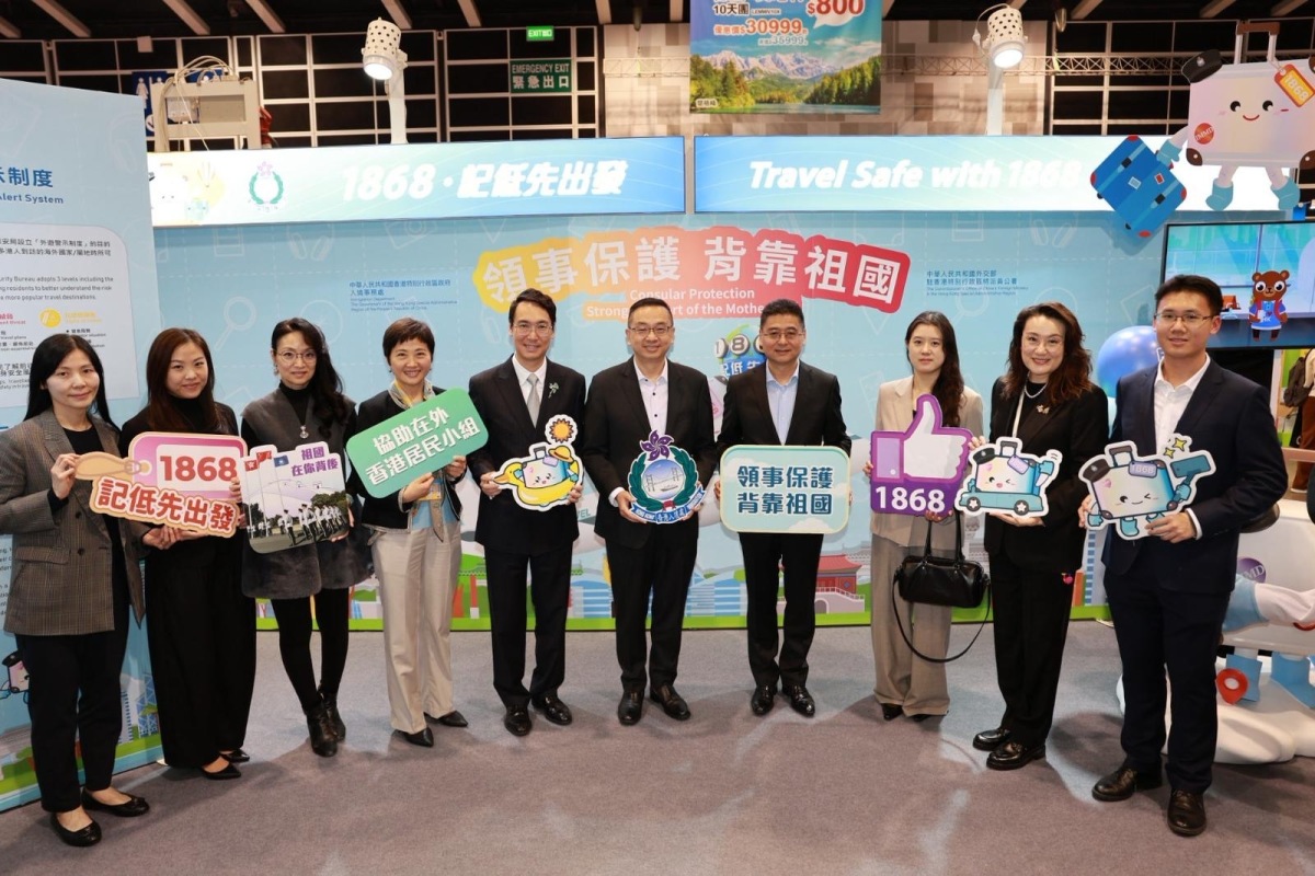 【點新聞報道】香港旅遊博覽會一連4日在香港會議展覽中心舉行,今日(29日),外交部駐港特派員公署副特派員花有及入境處處長郭俊峯親臨香港入境事務處「協助在外香港居民小組」攤位,為同事打氣加油。