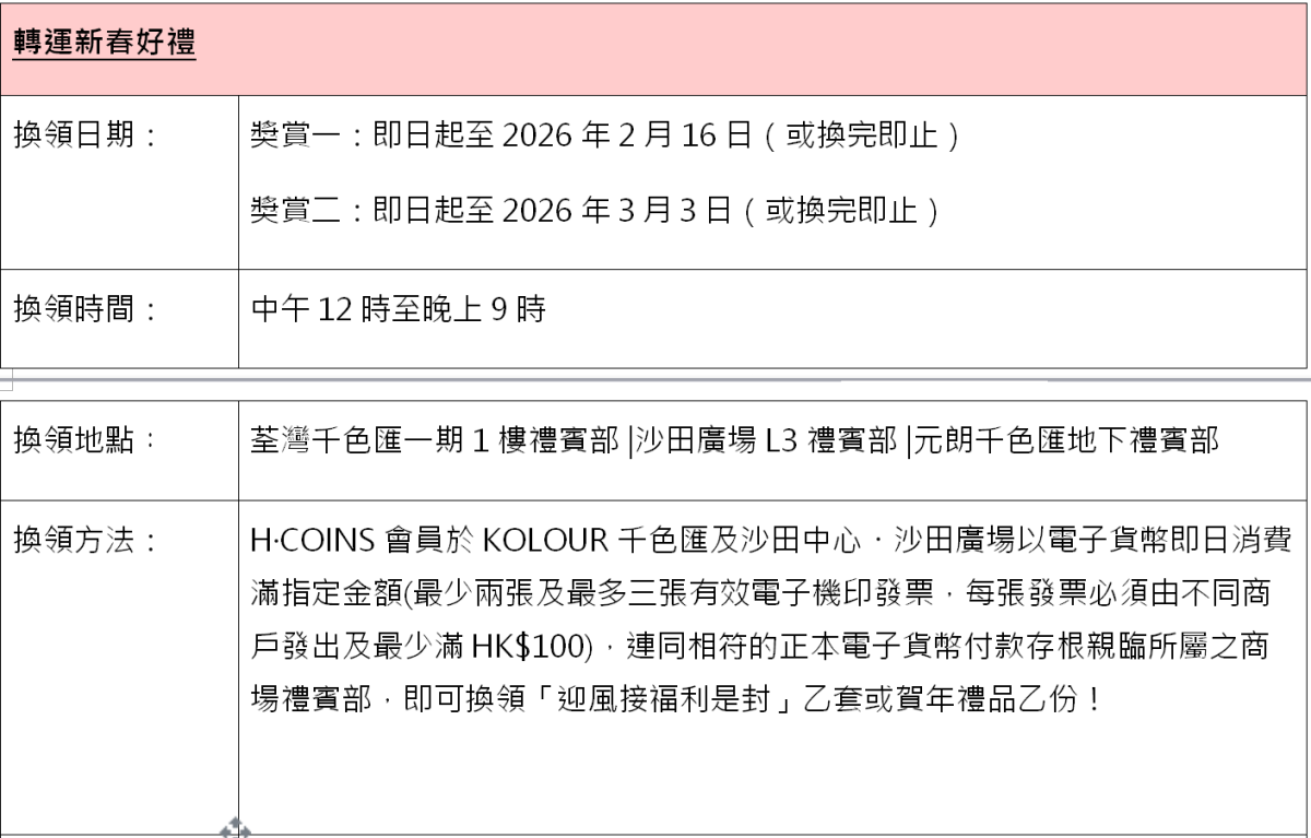 【點新聞報道】喜慶歡騰迎馬年!盡享美食與連串精彩活動迎新春!荃灣千色匯、沙田中心·沙田廣場及元朗千色匯隆重呈獻「彩運迎春」,以風車和幻影燈籠帶來多個場景,更有即席DIY揮春和限定利是封換領;合和商場農曆新年亦呈獻「福馬迎春市集」,除美食美酒外,中庭更有逾4米高巨型桃花樹,更有新春Busking Show、即席揮毫寫揮春、賀年臉部彩繪等連串活動精彩助慶,一齊來睇睇!