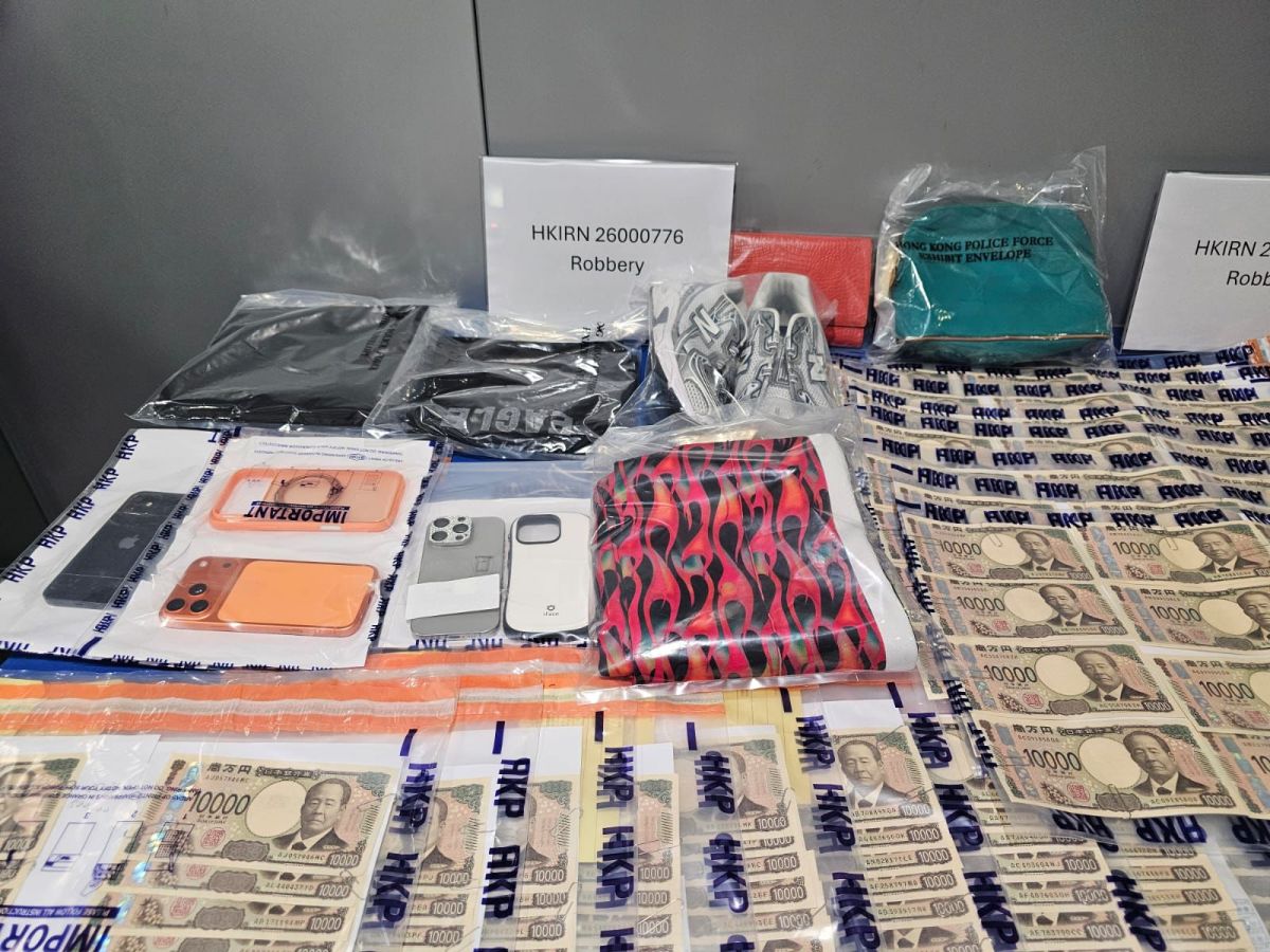 警方掌握信息後隨即作出部署,派員前往香港機場,以搶劫罪名拘捕了一個由兩男一女組成的犯罪團夥,其中兩名男匪徒,正是早上在找換店外搶走日本籍男受害人裝滿日圓現金背包的那兩名男子。而被捕的女子則是他們的同黨。該名女子在案發前一直參與準備工作,案發後也與兩名男被捕人一同逃離現場。3名被捕人的年齡介於23至52歲之間,兩名男被捕人為日本籍,女被捕人則為中國籍。在行動期間,警方從這3名被捕人身上及其行李中,檢獲約460萬日圓的現金。