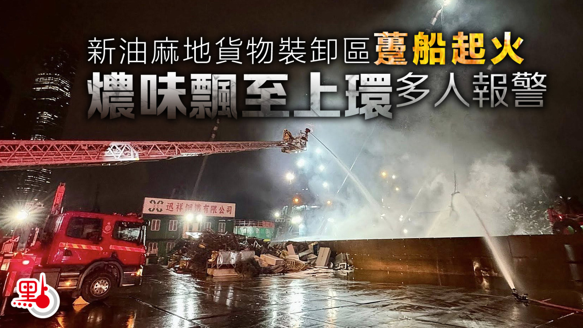 【點新聞報道】新油麻地公眾貨物裝卸區凌晨有躉船起火。今日(2月1日)凌晨3時54分,一艘停泊在上址的躉船突然冒煙起火,消防接報到場,出動兩條喉及兩隊煙帽隊灌救。初步相信船上當時無人,船上運載的回收電子廢料冒煙起火,事件中無人受傷。