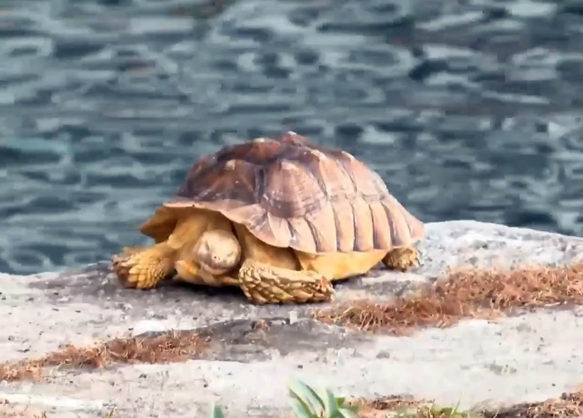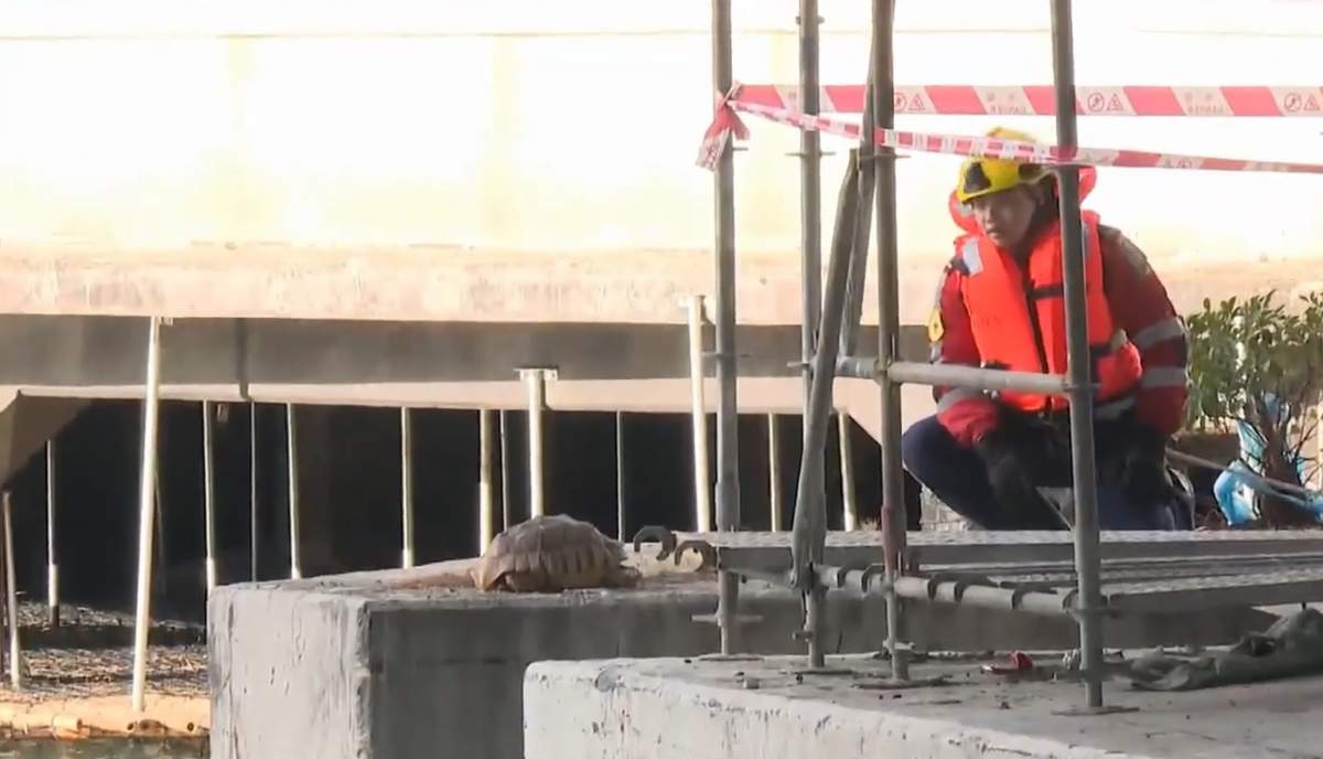 【點新聞報道】今日(2月1日)下午3時時半,警方接獲途人報案,指在北角碼頭附近的東區走廊下,發現一隻陸龜被困在一個四面環水的大型橋躉上奄奄一息,疑曾遭人不恰當對待。警員到場即聯絡消防處及愛護動物協會人員到場協助,期間人員繫上安全繩,小心登上該橋躉檢查及拍照記錄,證實該隻陸龜已經死亡。死去的陸龜是蘇卡達象龜,又稱為盾臂龜,身長約30厘米。由於盾臂龜屬沙漠型陸龜,是草食動物,不能在水中生存,而牠被困於四面環水的橋躉上,警方暫列作殘酷對待動物跟進調查。
