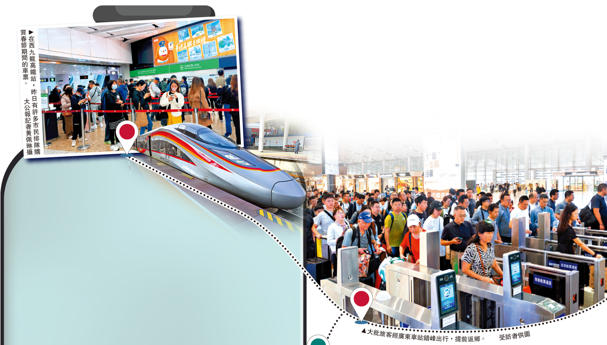 鐵路部門人士建議,春運期間香港旅客搭乘高鐵部分線路可「繞道」深圳或廣州等珠三角車站始發,這些車站始發班次相對較多,部分時段可望「撿漏」購得餘票。國鐵集團指出,春運期間將在客流集中方向及時安排加開旅客列車或夜間高鐵,所有新增票額將優先配售給已提交候補購票訂單的旅客。據了解,春運期間開行夜間高鐵近千列,覆蓋京廣、京滬、滬昆等主要高鐵幹線通道。