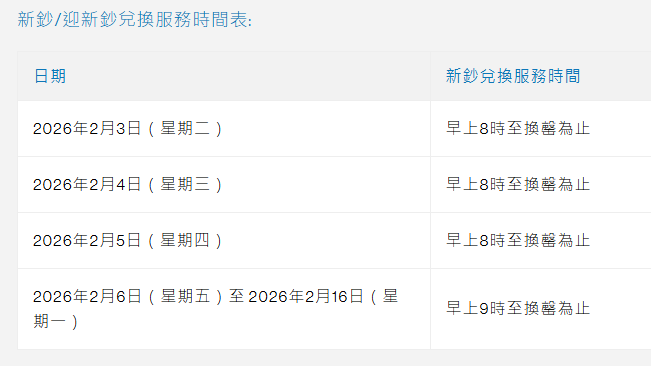 2026迎新鈔具體時間安排: