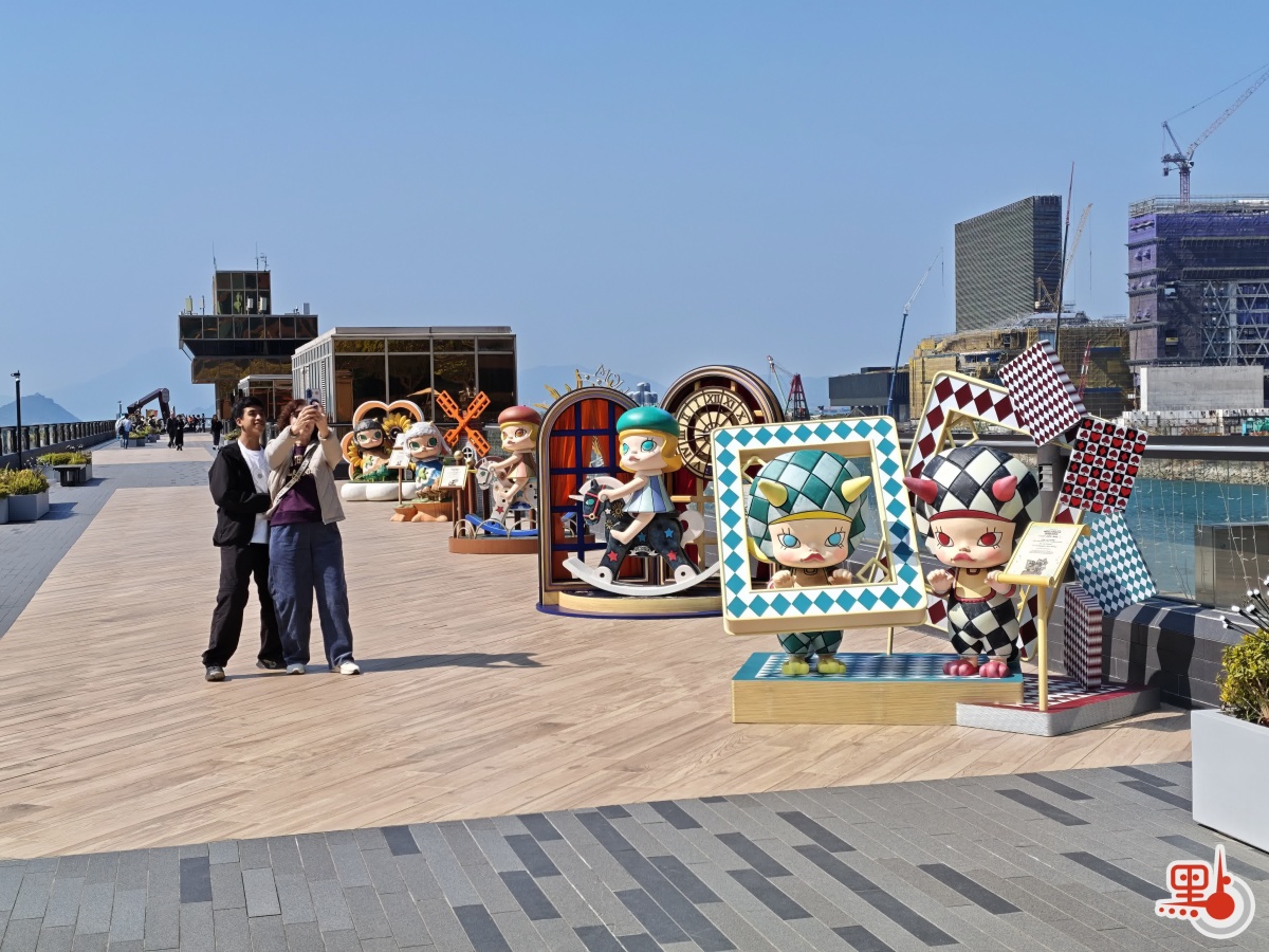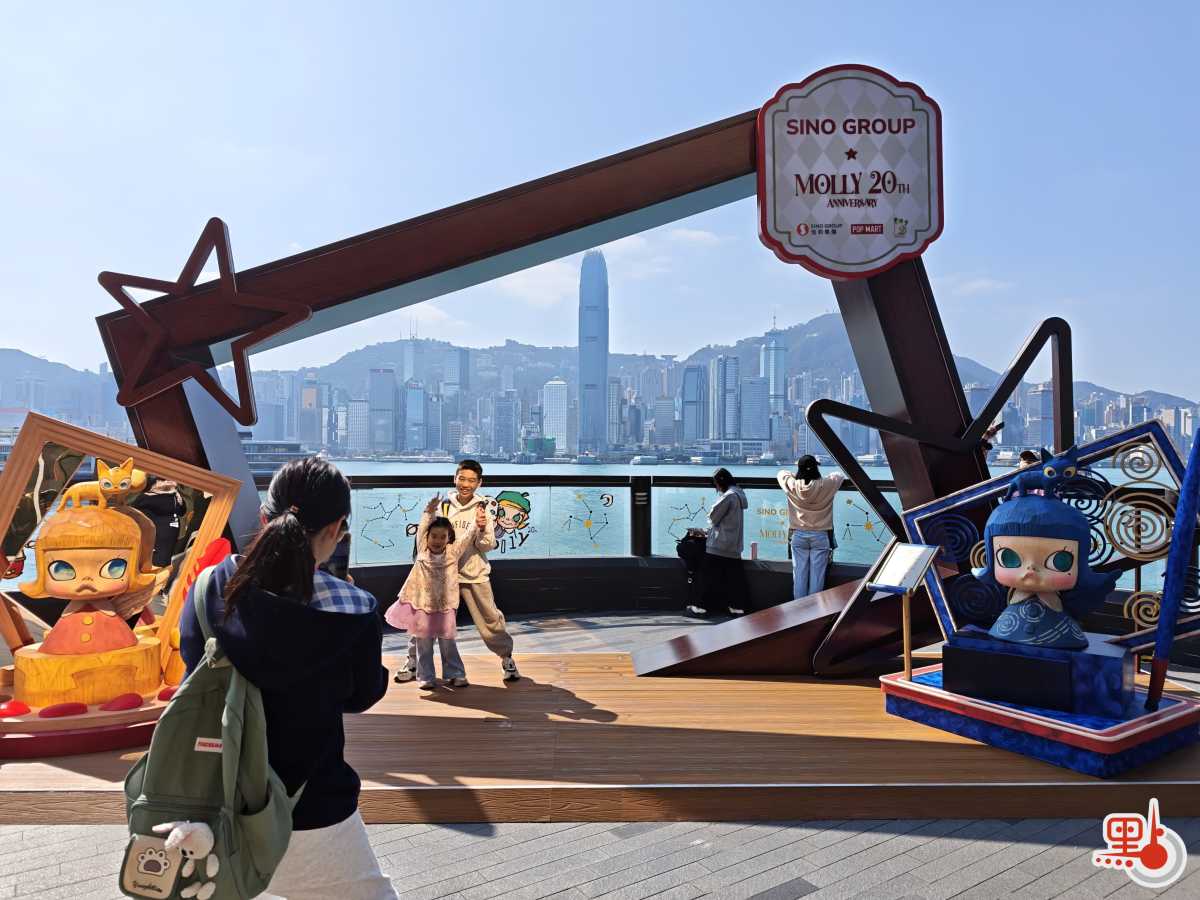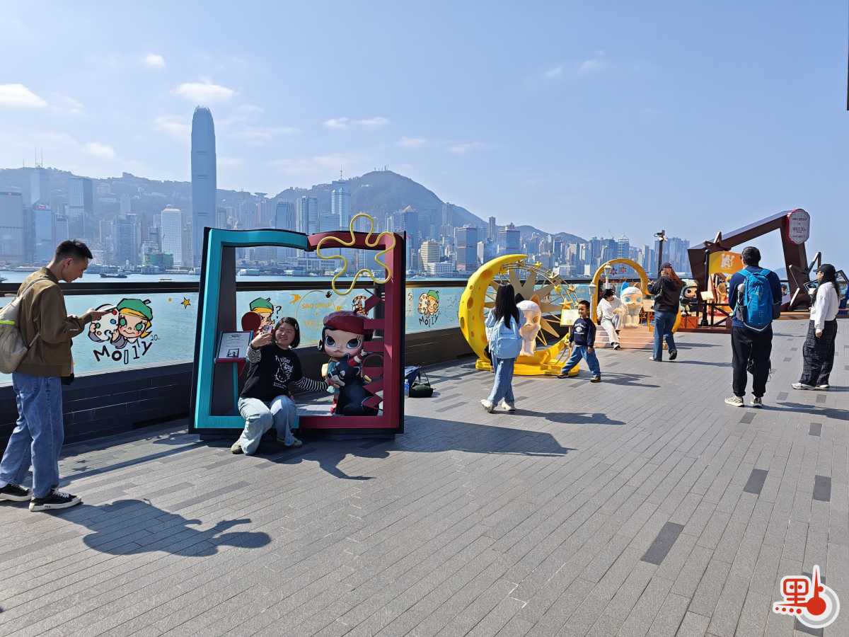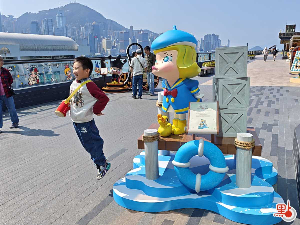 而原平台花園則化身MOLLY主題「遊樂園」,吸引了不少市民遊客前來與可愛的MOLLY們打卡留念。花園入口處矗立着經典的首代造型,內左右兩側設有數十款周年紀念版造型雕像;花園盡頭特設「相框」,觀眾可與MOLLY及維港海景共同合影。